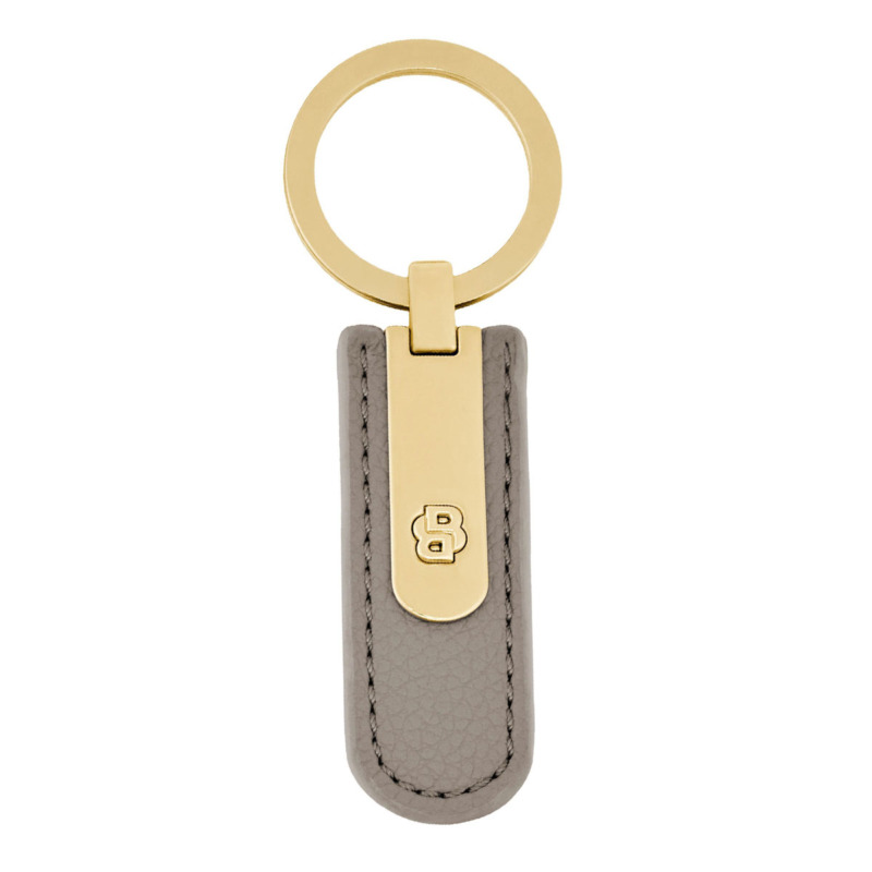 Μπρελόκ της εταιρείας Hugo Boss κατασκευασμένο από οικολογικό δέρμα σε taupe χρώμα. Διαθέτει το τρισδιάστατο σύμβολο Double B στο κέντρο και το λογότυπο χαραγμένο στον κρίκο. Η κλειδοθήκη διαθέτει μία δακτύλιο διάστασης 26 mm, ιδανική για την προστασία των κλειδιών σας.