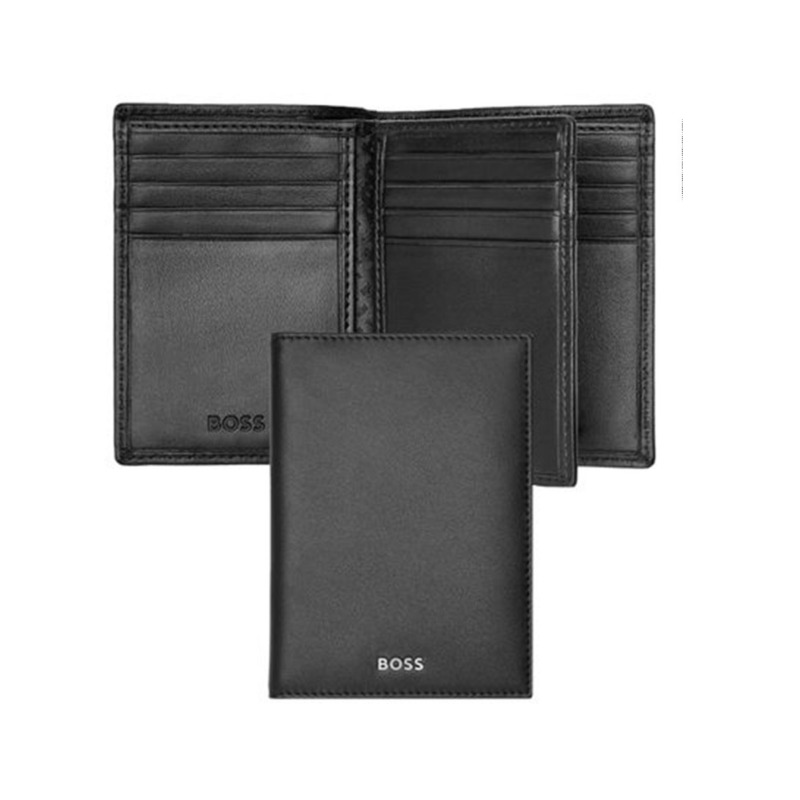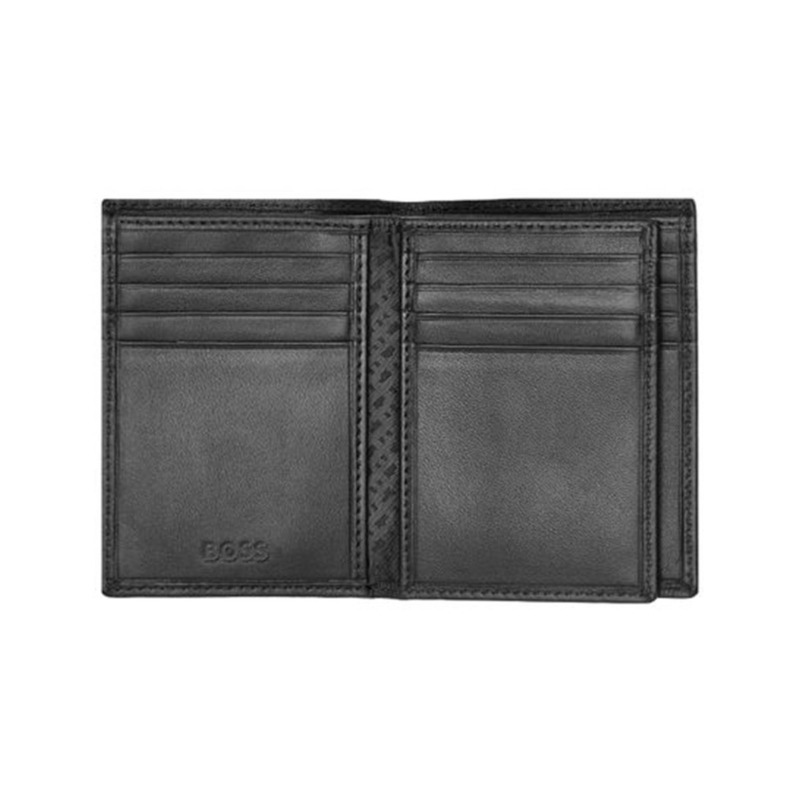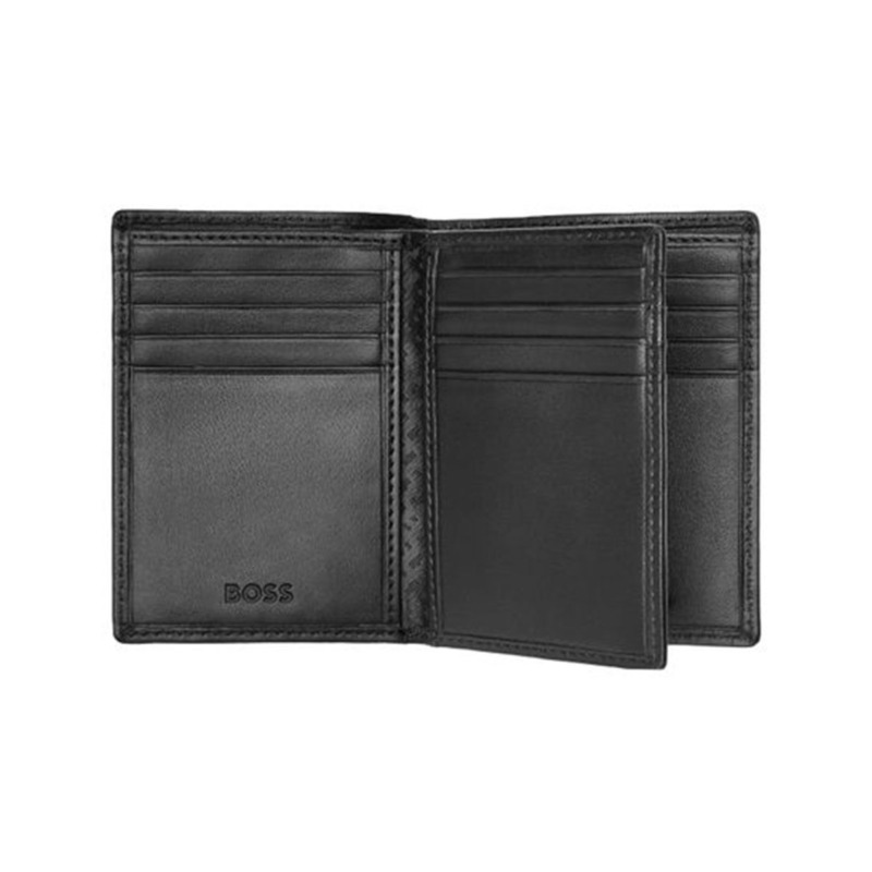 Δερμάτινηο πορτοφόλι από την HUGO BOSS σε μαύρο χρώμα. Διαθέτει 16 θέσεις για πιστωτικές κάρτες και 2 θέσεις για χαρτονομίσματα.