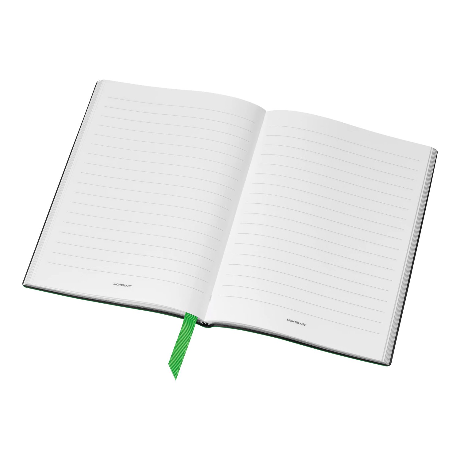 Δερμάτινο σημειωματάριο της εταιρείας Montblanc, κατασκευασμένο από την καλύτερη ποιότητα δέρματος Saffiano σε χρώμα πράσινο. Οι σελίδες διαθέτουν χρωματιστό σόκορο (περιμετρικός χρωματισμός χαρτιού) σε χρώμα ασημί.