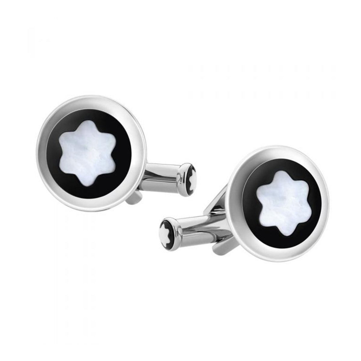 Mανικετόκουμπα απο ανοξειδωτο ατσάλι με το έμβλημα της Montblanc από mother of pearl και μαύρο PVD.