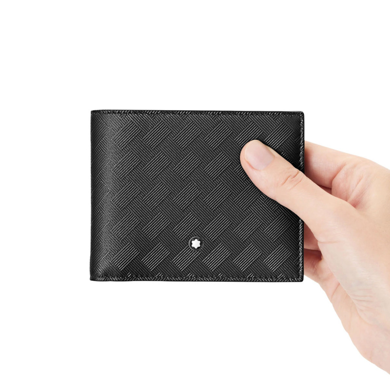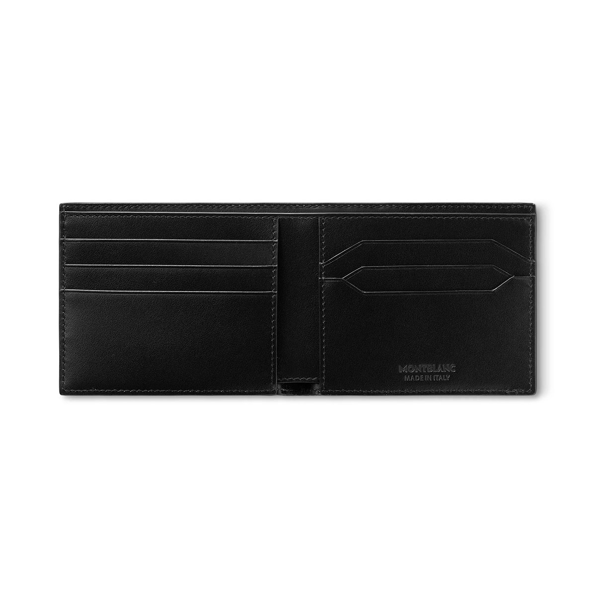 Δερμάτινο πορτοφόλι του οίκου Montblanc κατασκευασμένο από υψίστης ποιότητας δέρμα σε μαύρο χρώμα. Το πορτοφόλι διαθέτει 6 θήκες πιστωτικών καρτών, 2 θήκες για χαρτονομίσματα και 2 εναλλακτικές θήκες. Εσωτερικά, διαθέτει φόδρα ζακάρ και εξωτερικά το έμβλημα της Montblanc από παλλάδιο.