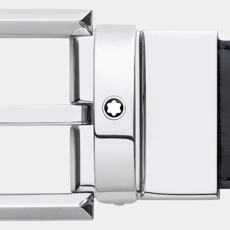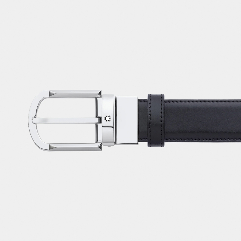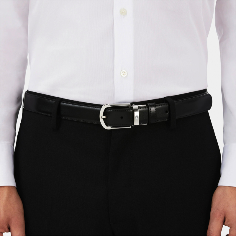 Δερμάτινη ζώνη από τον οίκο Montblanc. Η ζώνη είναι σε μαύρο χρώμα από την μία πλευρά και σε καφέ χρώμα από την άλλη, μπορεί να φορεθεί και από τις δυο όψεις.
