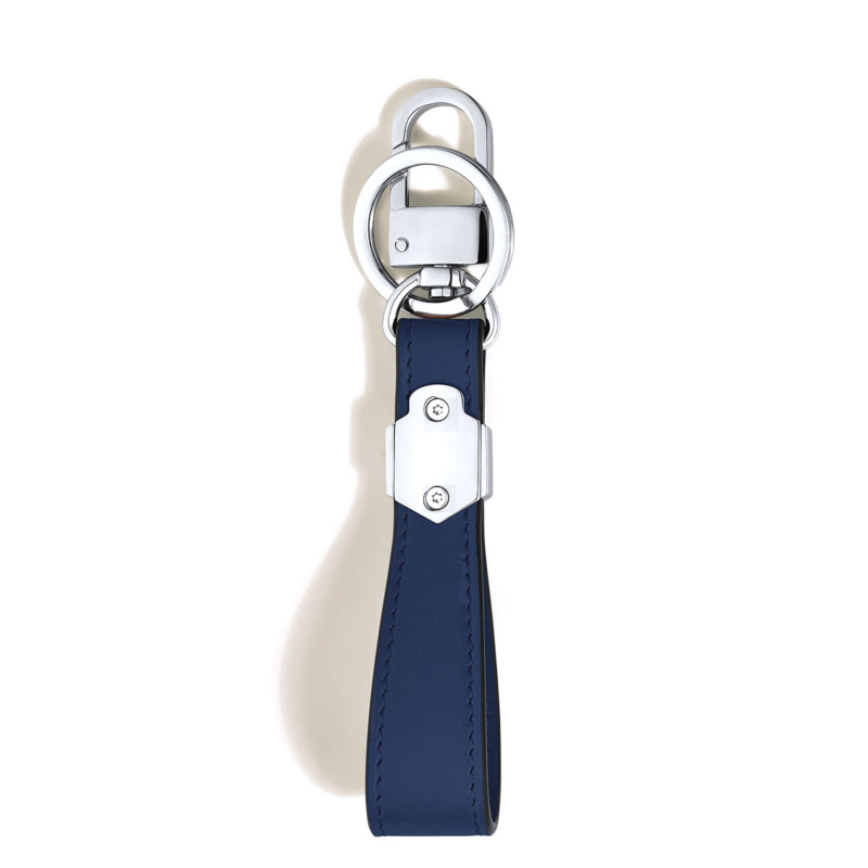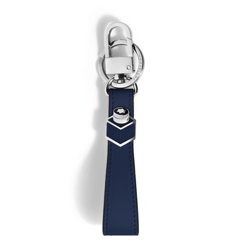 Δερμάτινο μπρελόκ της Montblanc σε σκούρο μπλε χρώμα. Τα μεταλλικά στοιχεία της κλειδοθήκης είναι από ατσάλι. Αυτό το ιδιαίτερο αξεσουάρ είναι εμπνευσμένο από την πλούσια κληρονομιά της Montblanc στην τέχνη της γραφής, συνδυάζοντας την πρακτικότητα με ένα μοναδικό design. Διαθέτει ένα χαρακτηριστικό δερμάτινο μοτίβο σε σχήμα μελανοδοχείου, που αποτελεί άμεση αναφορά στις ρίζες του οίκου. Περιλαμβάνει έναν ανθεκτικό κρίκο για πολλαπλά κλειδιά και έναν πρακτικό γάντζο, που επιτρέπει την εύκολη στερέωσή του σε τσάντες ή στη ζώνη.