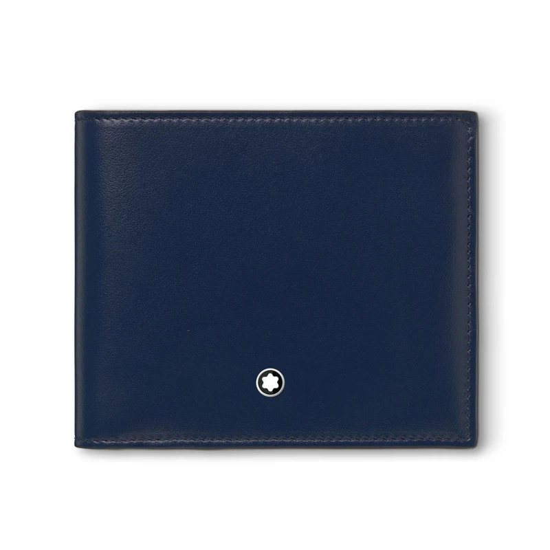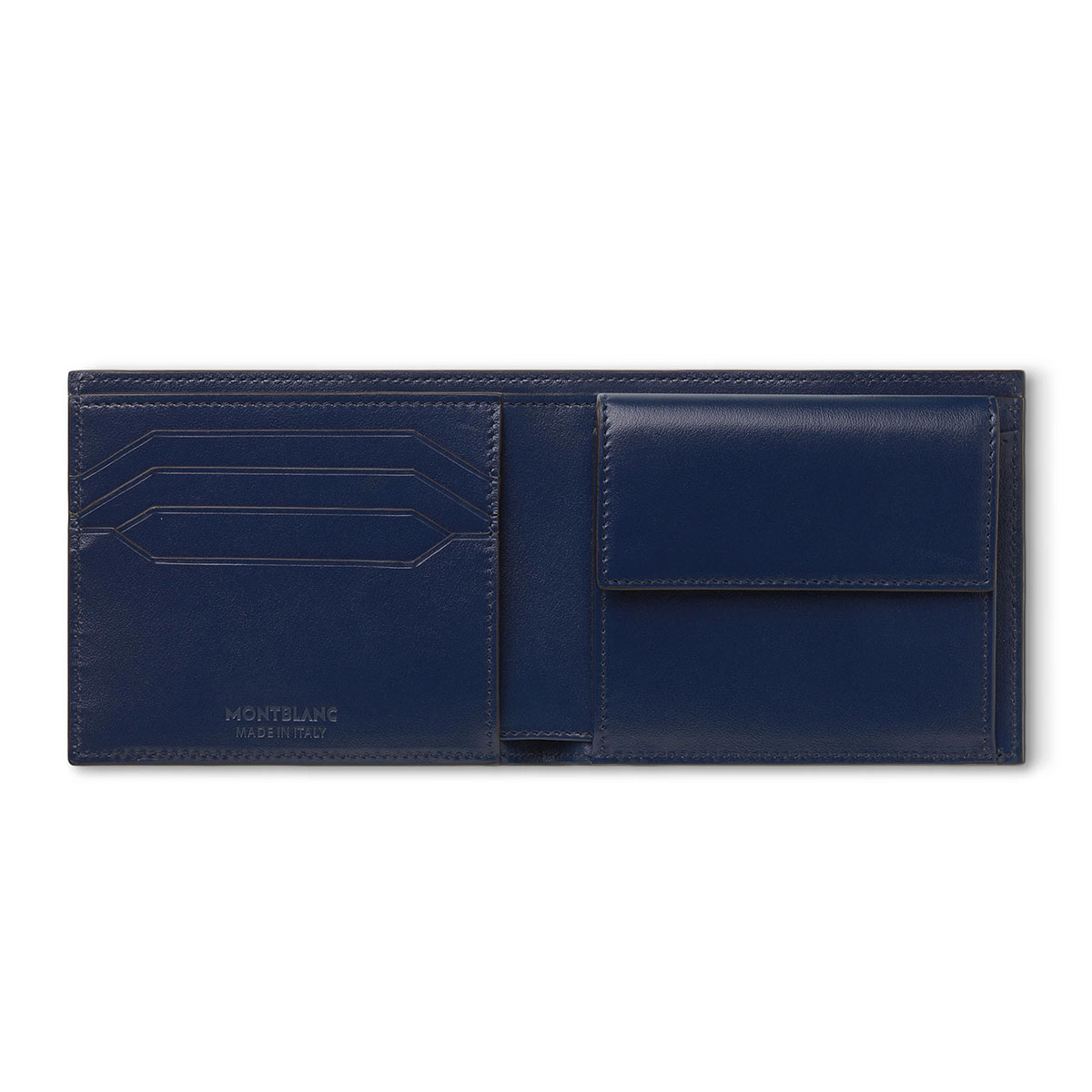 Δερμάτινο πορτοφόλι του οίκου Montblanc κατασκευασμένο από την καλύτερη ποιότητα δέρματος στον κόσμο σε μπλε χρώμα. Διαθέτει 4 θήκες για πιστωτικές κάρτες, 2 πρόσθετες θήκες, 1 θέση για χαρτονομίσματα και θήκη για κέρματα. Εσωτερικά φόδρα ζακάρ και εξωτερικά το έμβλημα της Montblanc από παλλάδιο.