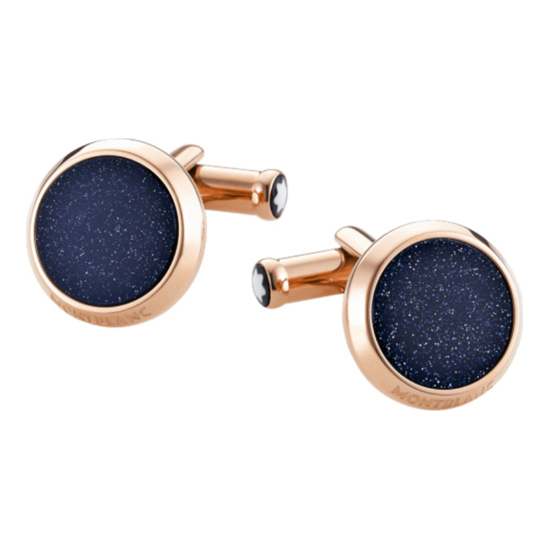 Μανικετόκουμπα του οίκου Montblanc από επίχρυσο ανοξείδωτο ατσάλι με μπλε χρυσόλιθο.