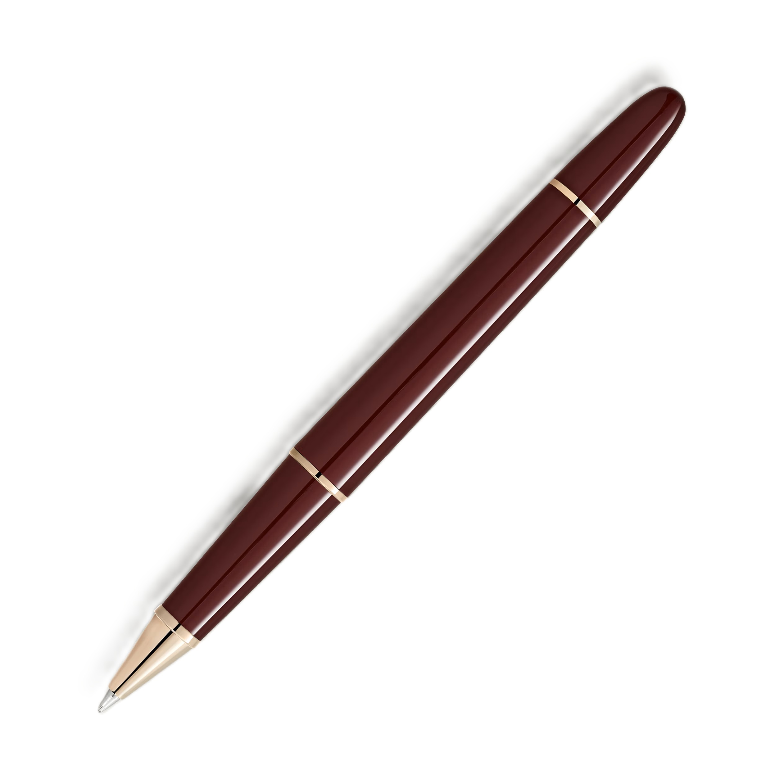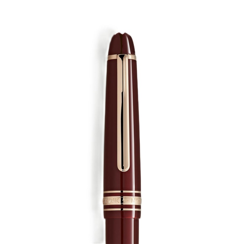 Στυλό roller με καπάκι της εταιρείας Montblanc σε μπορντό χρώμα. Το στυλό είναι κατασκευασμένο από πολύτιμη ρητίνη και επιχρυσωμένες λεπτομέρειες, ενώ η μύτη του στυλό είναι κατασκευασμεύνη από χρυσό 14Κ.