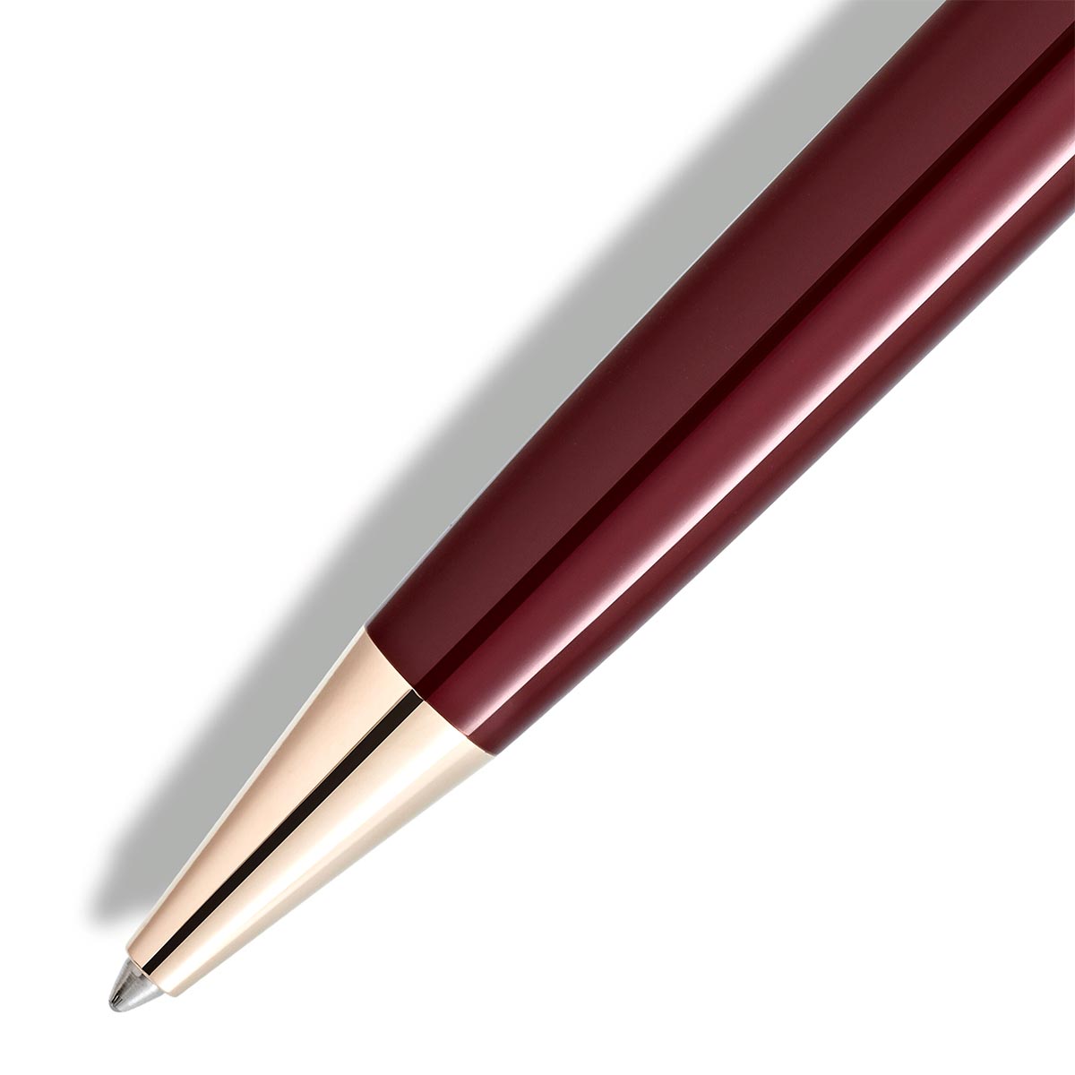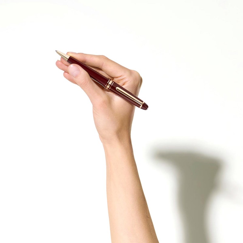 Στυλό διαρκείας με καπάκι της εταιρείας Montblanc σε μπορντό χρώμα. Το στυλό είναι κατασκευασμένο από πολύτιμη ρητίνη και επιχρυσωμένες λεπτομέρειες.