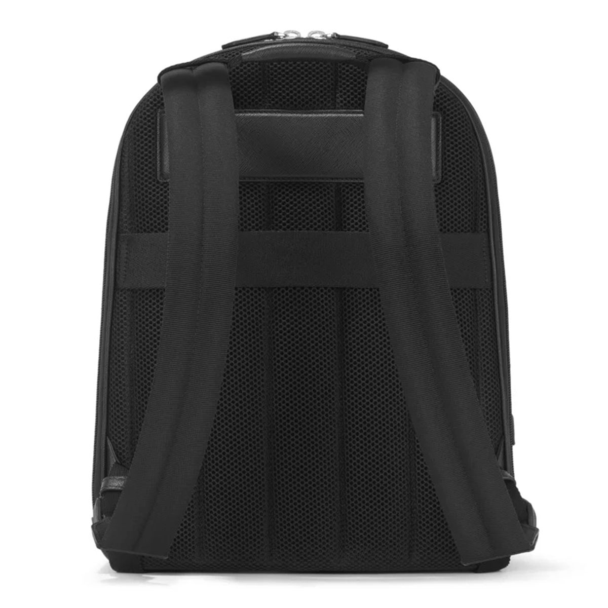 Σακίδιο πλάτης της εταιρείας Montblanc Sartorial σε μαύρο χρώμα. Το backpack είναι ευρύχωρο και λειτουργικό, διαθέτει 3 θήκες, διατηρεί τα προσωπικά αντικείμενα οργανωμένα, ασφαλή και εύκολα προσβάσιμα. Μπορεί να χωρέσει laptop έως 15”, έγγραφα και ηλεκτρονικές συσκευές. Η εξωτερική ανοιχτή τσέπη παρέχει εύκολη πρόσβαση σε απαραίτητα, όπως κλειδιά και εισιτήρια.