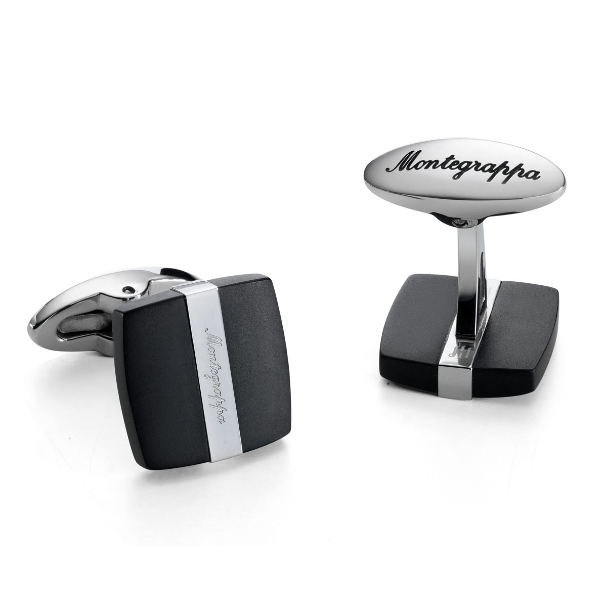 Μανικετόκουμπα του οίκου Montegrappa κατασκευασμένα από ατσάλι. Τα μανικετόκουμπα εκφράζουν το διακριτικό στυλ και την κομψότητα.