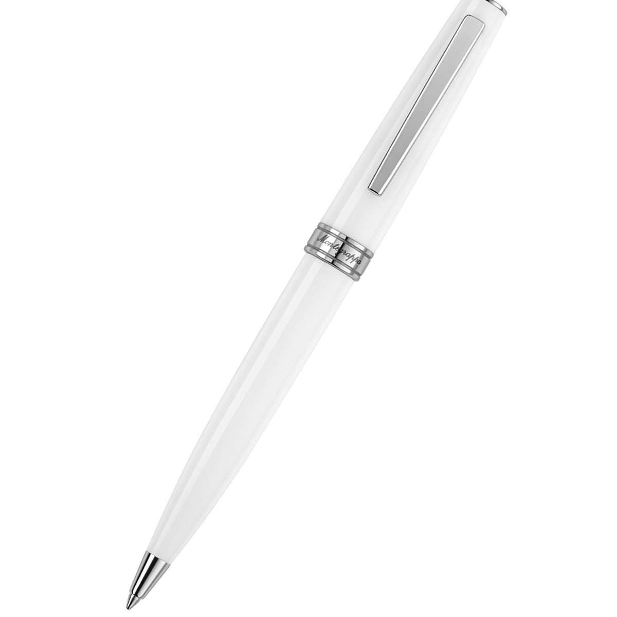 Στυλό διαρκείας από την εταιρεία Montegrappa σε λευκό χρώμα. Το στυλό είναι κατασκευασμένο από πολύτιμη ρητίνη.