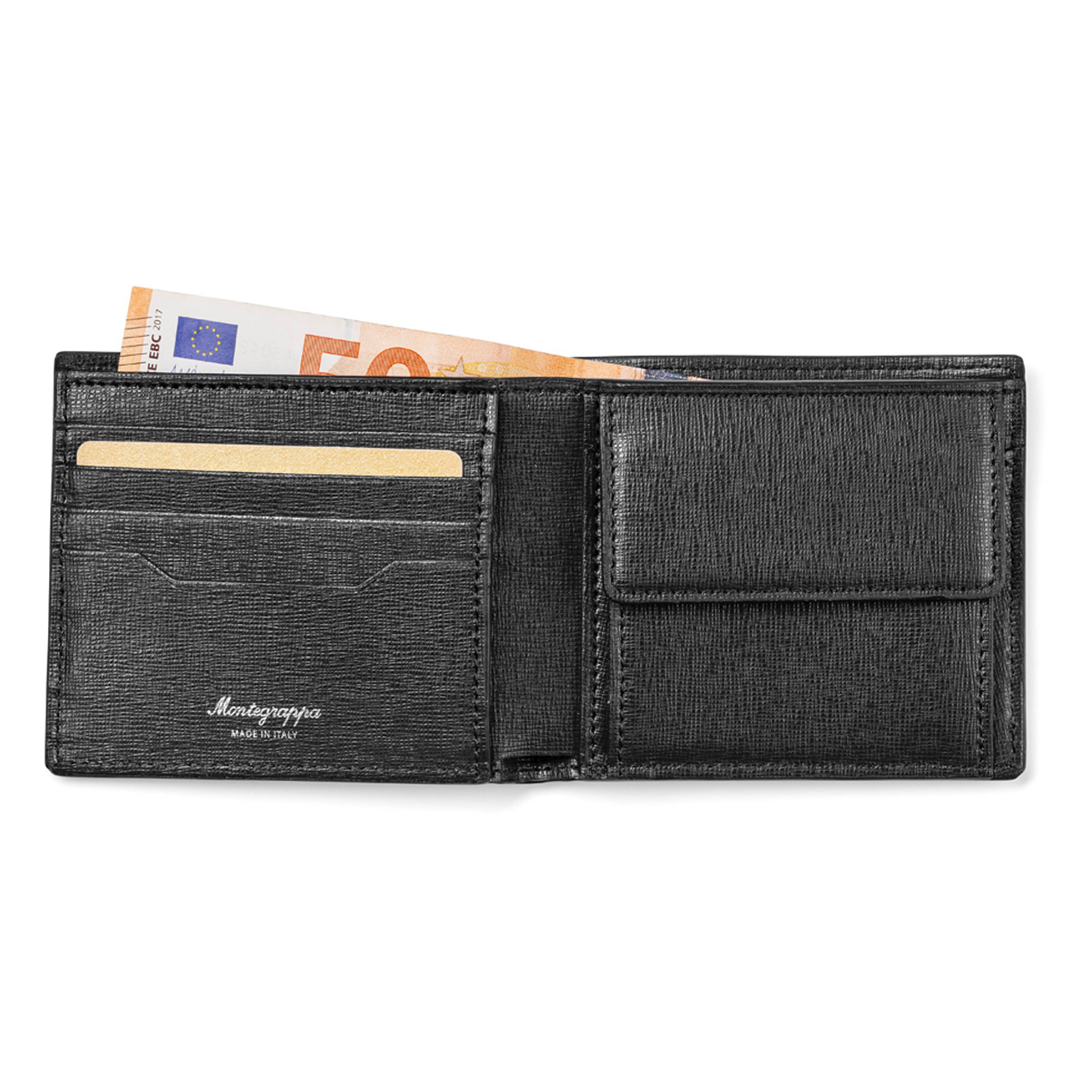 Δερμάτινο πορτοφόλι του οίκου Montegrappa κατασκευασμένο από την καλύτερη ποιότητα δέρματος στον κόσμο σε μαύρο χρώμα. Διαθέτει 4 θήκες για πιστωτικές κάρτες, 2 πρόσθετες θήκες, 1 θέση για χαρτονομίσματα και θήκη για κέρματα.