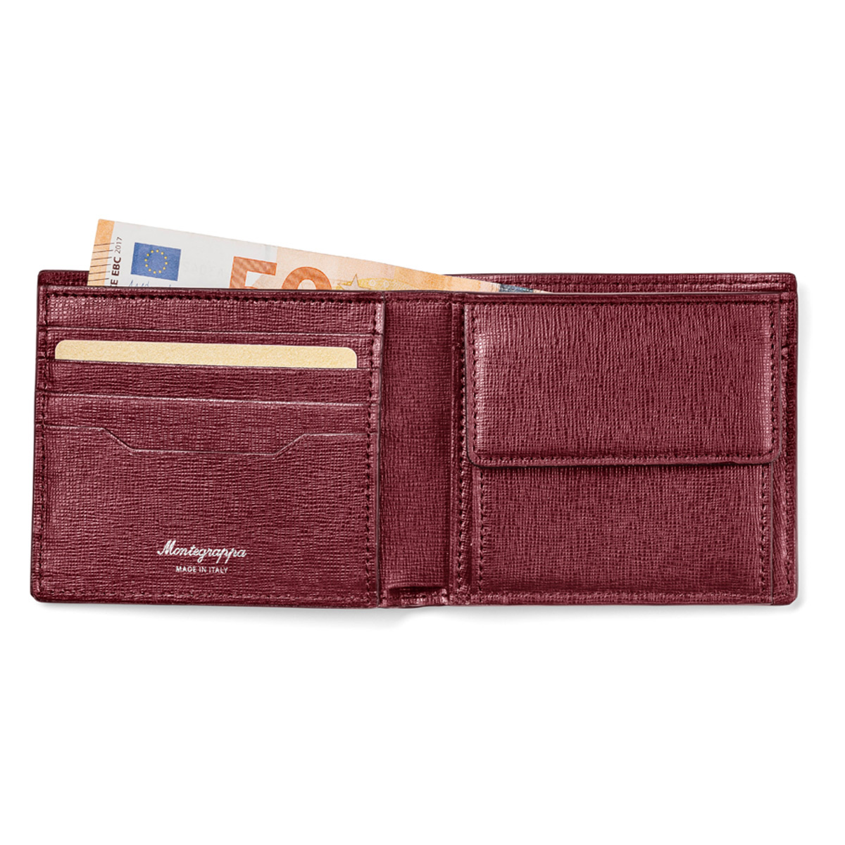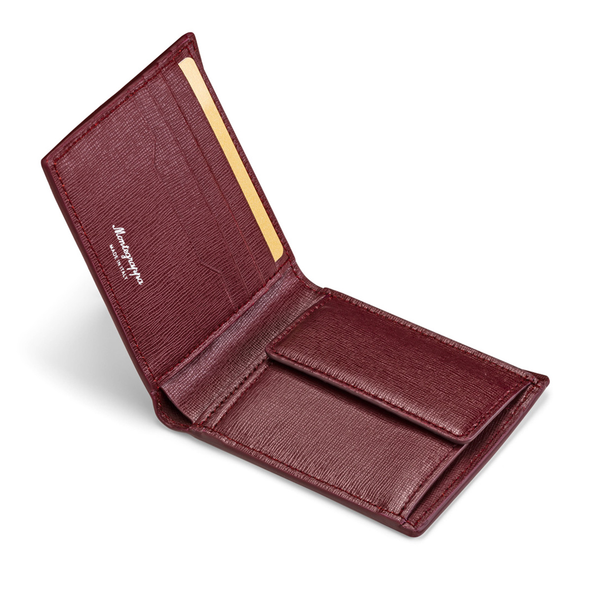 Δερμάτινο πορτοφόλι του οίκου Montegrappa κατασκευασμένο από την καλύτερη ποιότητα δέρματος στον κόσμο σε μπορντό χρώμα. Διαθέτει 4 θήκες για πιστωτικές κάρτες, 2 πρόσθετες θήκες, 1 θέση για χαρτονομίσματα και θήκη για κέρματα.
