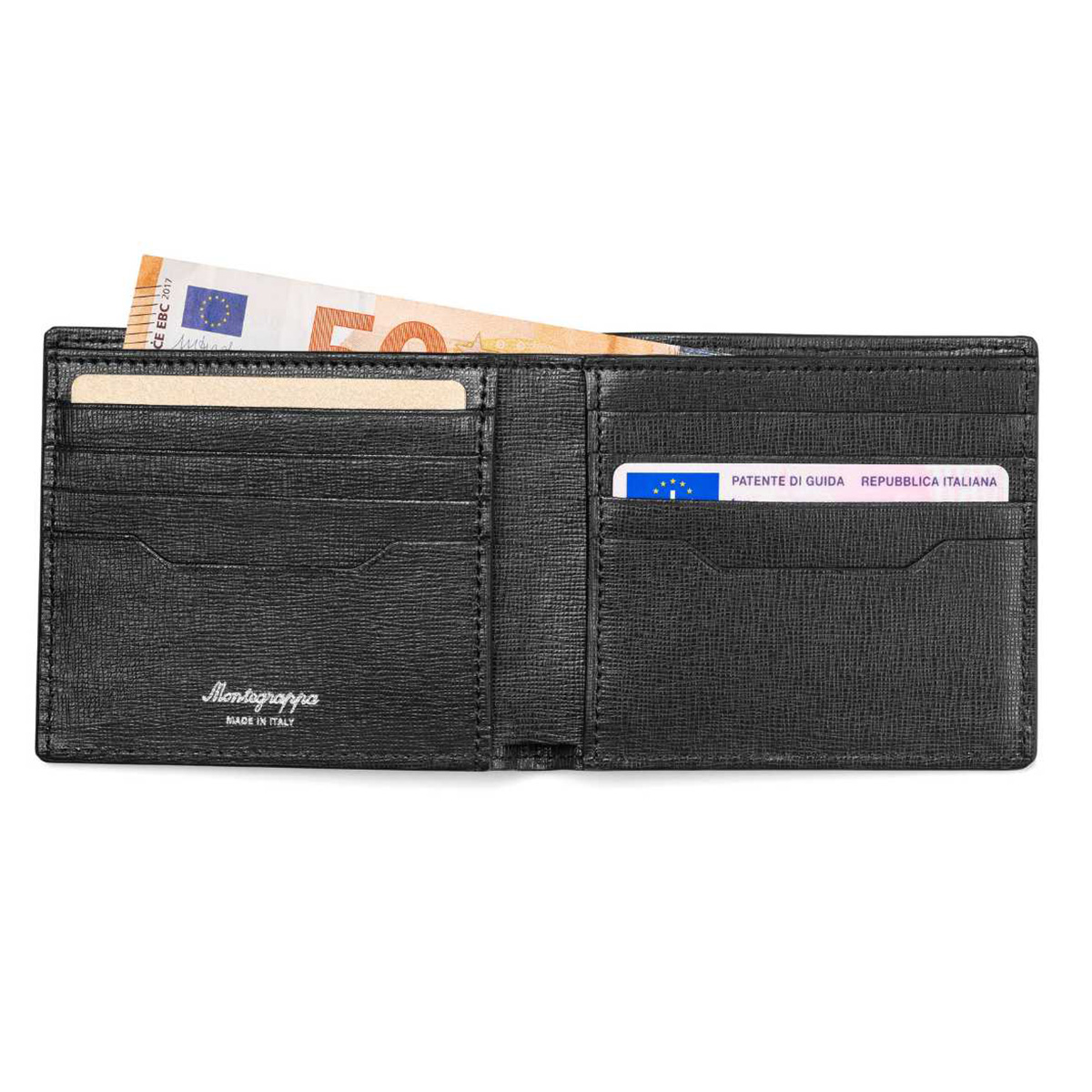 Δερμάτινο πορτοφόλι του οίκου Montegrappa κατασκευασμένο από την καλύτερη ποιότητα δέρματος στον κόσμο σε μαύρο χρώμα. Διαθέτει 8 θήκες για πιστωτικές κάρτες, 2 πρόσθετες θήκες, 1 θέση για χαρτονομίσματα