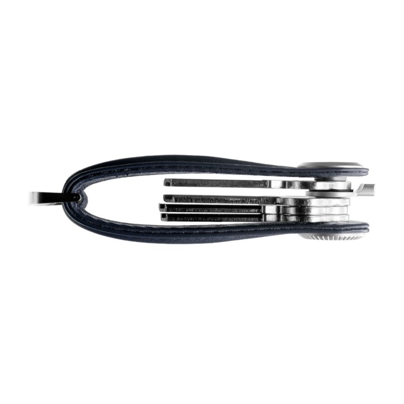 Κλειδοθήκη της εταιρίας ORBITKEY κατασκευασμένη από γνήσιο sapphire δέρμα σε χρώμα μπλε. Χωράει από 2 εως 7 κλειδιά ανάλογα με το μέγεθος αυτών και χάρη στον πρόσθετο κρίκο μπορούν να κρατηθούν και πρόσθετα αξεσουάρ. Η κλειδοθήκη αυτή χάρη στον μοναδικό σχεδιασμό της αποτελεί έναν ασφαλή τρόπο αποθήκευσης των κλειδιών.