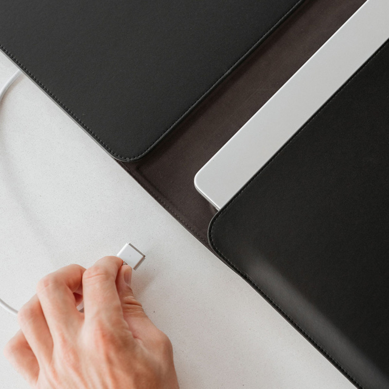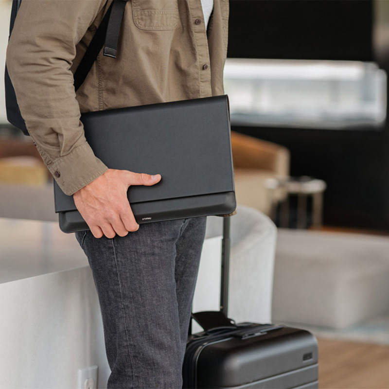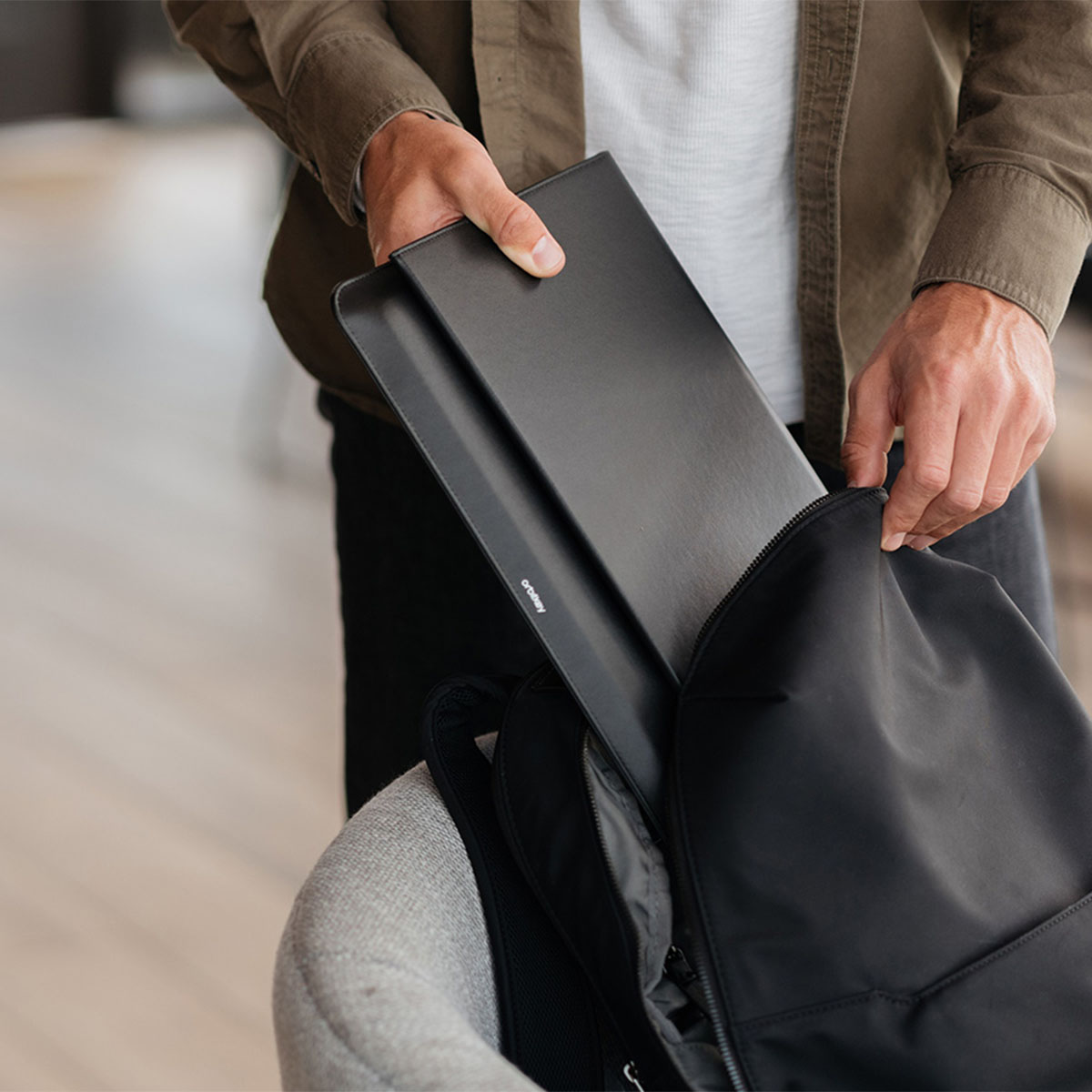Θήκη για λάπτοπ διάστασης 35,6 x 25,9 x 1,9 cm σε μαύρο χρώμα. Η θήκη ανοίγει και λειτουργεί σαν σουμέν διάστασης 40,2 x 73 cm. Διαθέτει μαγνητικό κλείσιμο.