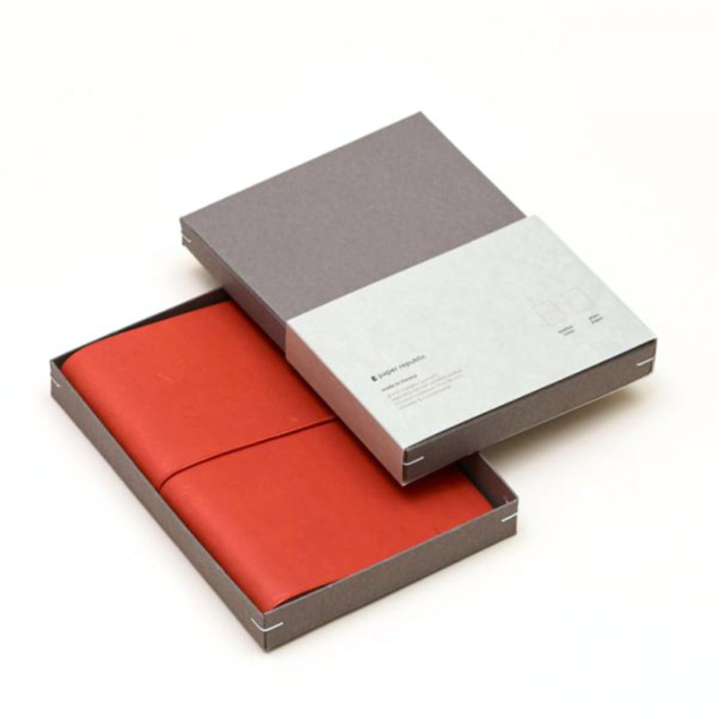 Χειροποίητο σημειωματάριο της Paper Republic κατασκευασμένο στη Βιέννη σε χρώμα κόκκινο. Το σημειωματάριο χάρη στο ειδικά επεξεργασμένο δέρμα του γίνεται πιο όμορφο με την χρήση , στην πάροδο του χρόνου. Το σημειωματάριο κλείνει με λάστιχο ενώ μπορεί να χωρέσει έως και 3 ανταλλακτικά.
