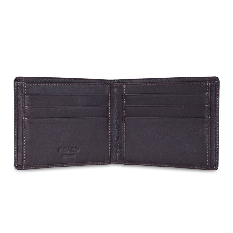 Δερμάτινο πορτοφόλι της εταιρείας Picard από υψηλής ποιότητας ανθεκτικό γνήσιο δέρμα, σε καφέ χρώμα. Διαθέτει 6 θήκες για πιστωτικές κάρτες και 2 πρόσθετες.