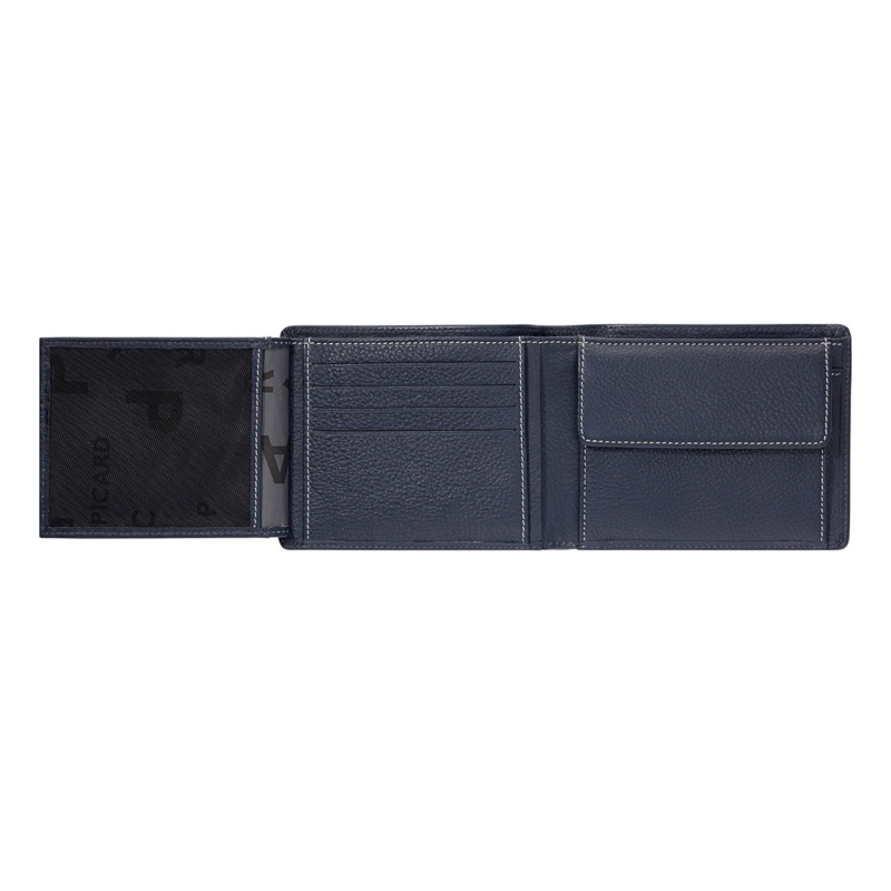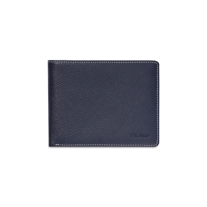 Δερμάτινο πορτοφόλι της εταιρείας Picard από υψηλής ποιότητας ανθεκτικό γνήσιο δέρμα, σε μπλε χρώμα. Διαθέτει 8 θήκες για πιστωτικές κάρτες, δύο εναλλακτικές θήκες και μία θήκη με διαφάνεια. Επιπλέον διαθέτει δύο μεγάλα ξεχωριστά τμήματα για χαρτονομίσματα και θήκη για κέρματα.