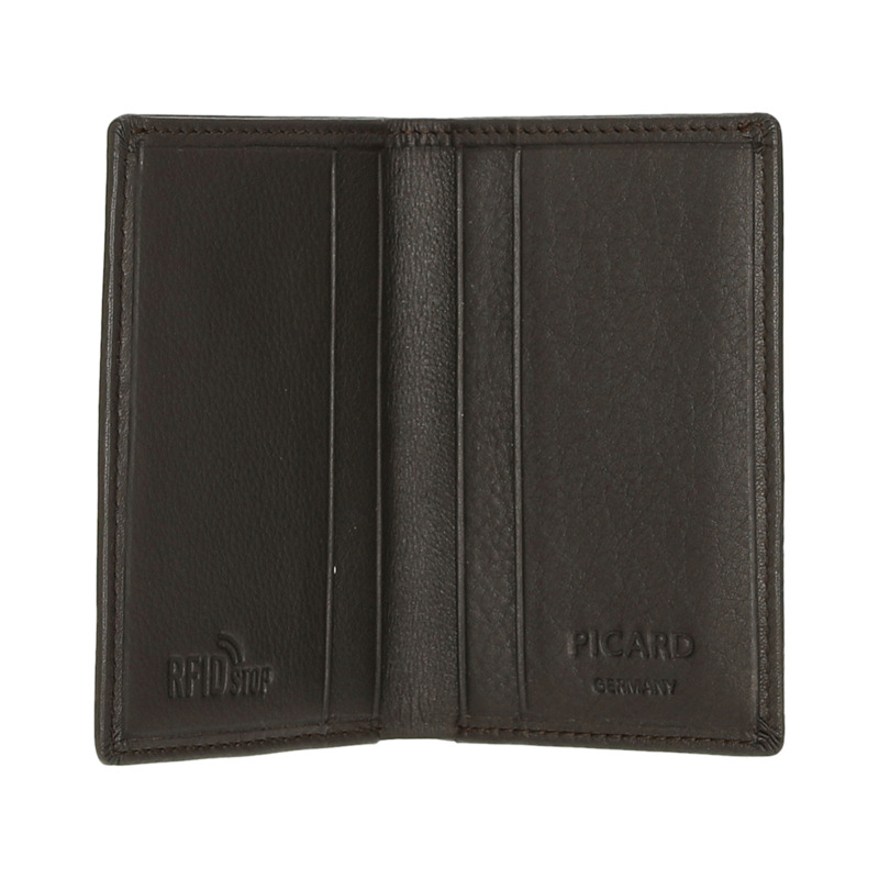 Καρτοθήκη της εταιρείας Picard από υψηλής ποιότητας ανθεκτικό γνήσιο δέρμα, σε καφέ χρώμα. Διαθέτει 4 θήκες πιστωτικών καρτών – 1 θήκη για χαρτονομίσματα. Άκρως ανθεκτική κατασκευή, ιδανική για όλους τους άντρες.