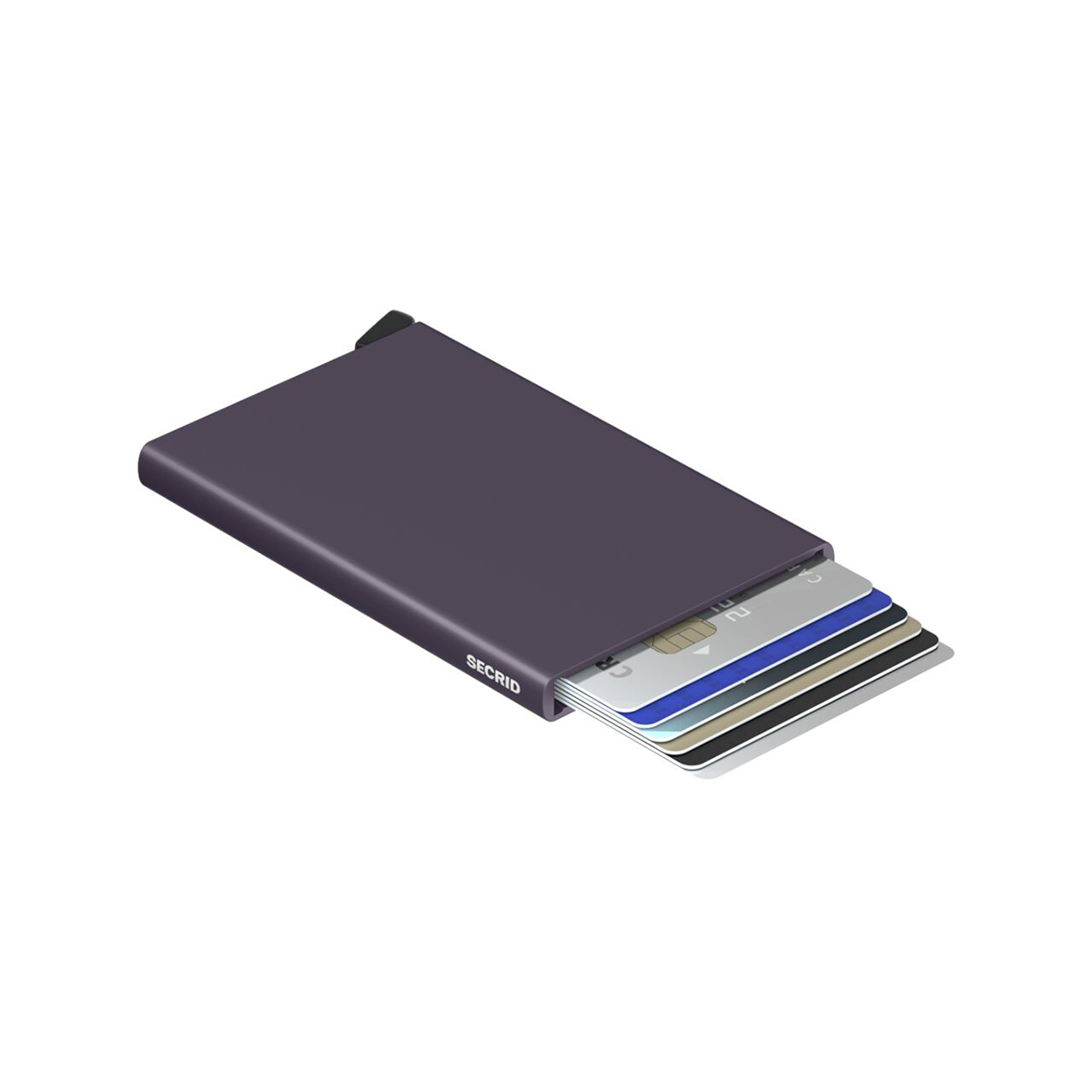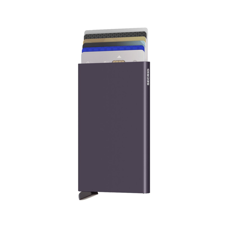 Καρτοθήκη πιστωτικών καρτών της Secrid, κατασκευασμένη από συμπαγές αλουμίνιο υψηλής αντοχής. Το αλουμινένιο περίβλημα προστατεύει τις κάρτες από κάμψη, φθορά και ανεπιθύμητες ανέπαφες συναλλαγές χάρη στην ενσωματωμένη προστασία RFID.