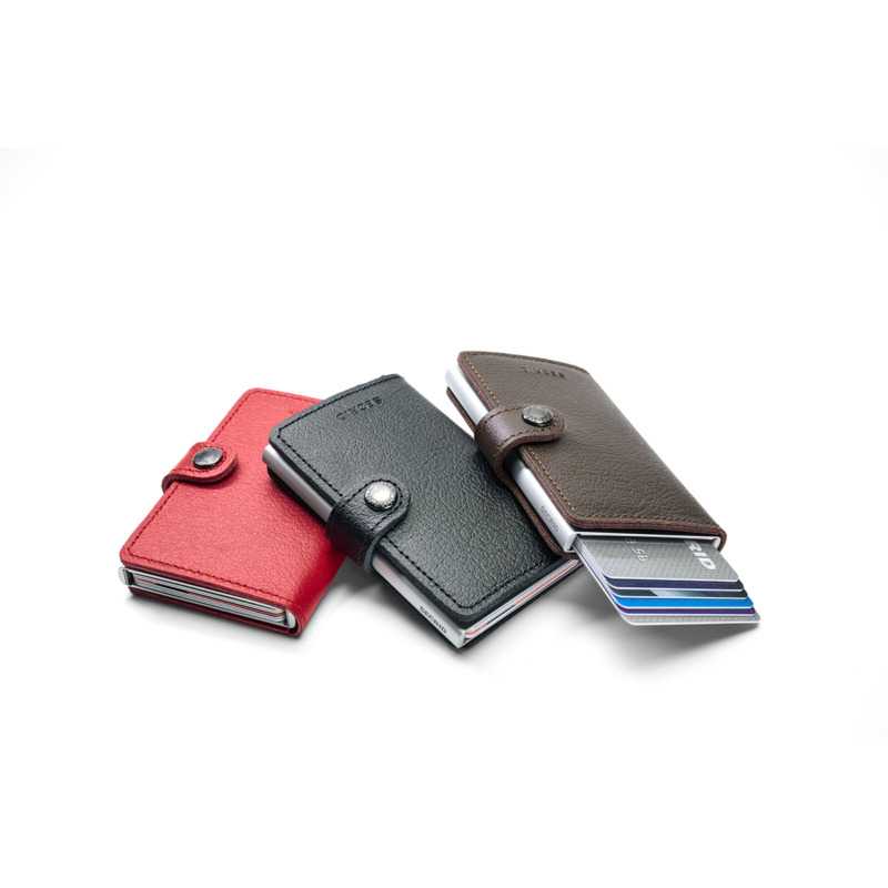 Δερμάτινη Καρτοθήκη πιστωτικών καρτών από την Secrid. Η καρτοθήκη έχει προστασία RFID. Έχει πατενταρισμένο μηχανισμό που βγάζει τις κάρτες με μια πολύ απλή κίνηση για γρήγορη πρόσβαση. Το αλουμίνιο προστατεύει τις κάρτες από ανεπιθύμητες ανέπαφες συναλλαγές.