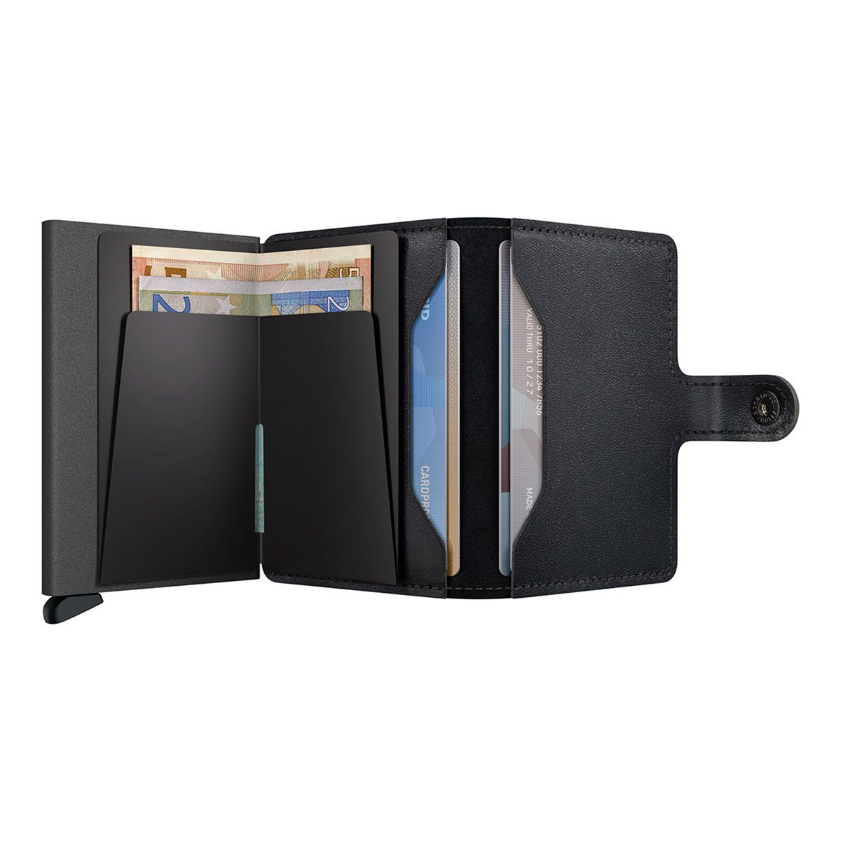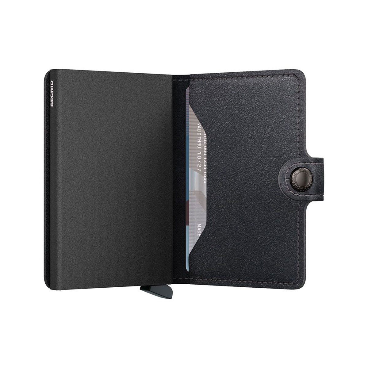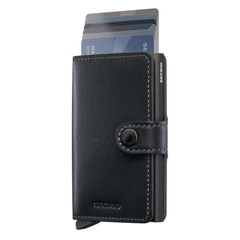 Δερμάτινη Καρτοθήκη πιστωτικών καρτών από την Secrid της σειράς Miniwallet. Η καρτοθήκη έχει προστασία RFID. Έχει πατενταρισμένο μηχανισμό που βγάζει τις κάρτες με μια πολύ απλή κίνηση για γρήγορη πρόσβαση. Το αλουμίνιο προστατεύει τις κάρτες από ανεπιθύμητες ανέπαφες συναλλαγές.