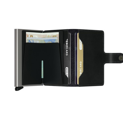Δερμάτινη Καρτοθήκη πιστωτικών καρτών από την Secrid. Η καρτοθήκη έχει προστασία RFID. Έχει πατενταρισμένο μηχανισμό που βγάζει τις κάρτες με μια πολύ απλή κίνηση για γρήγορη πρόσβαση. Το αλουμίνιο προστατεύει τις κάρτες από ανεπιθύμητες ανέπαφες συναλλαγές.