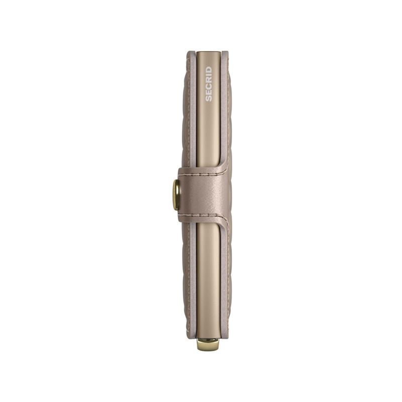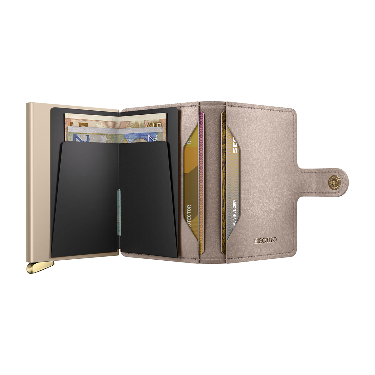 Δερμάτινη Καρτοθήκη πιστωτικών καρτών από την Secrid της σειράς Miniwallet. H καρτοθήκη έχει προστασία RFID. Διαθέτει πατενταρισμένο μηχανισμό που βγάζει τις κάρτες με μια πολύ απλή κίνηση για γρήγορη πρόσβαση. Το αλουμίνιο προστατεύει τις κάρτες από ανεπιθύμητες ανέπαφες συναλλαγές.