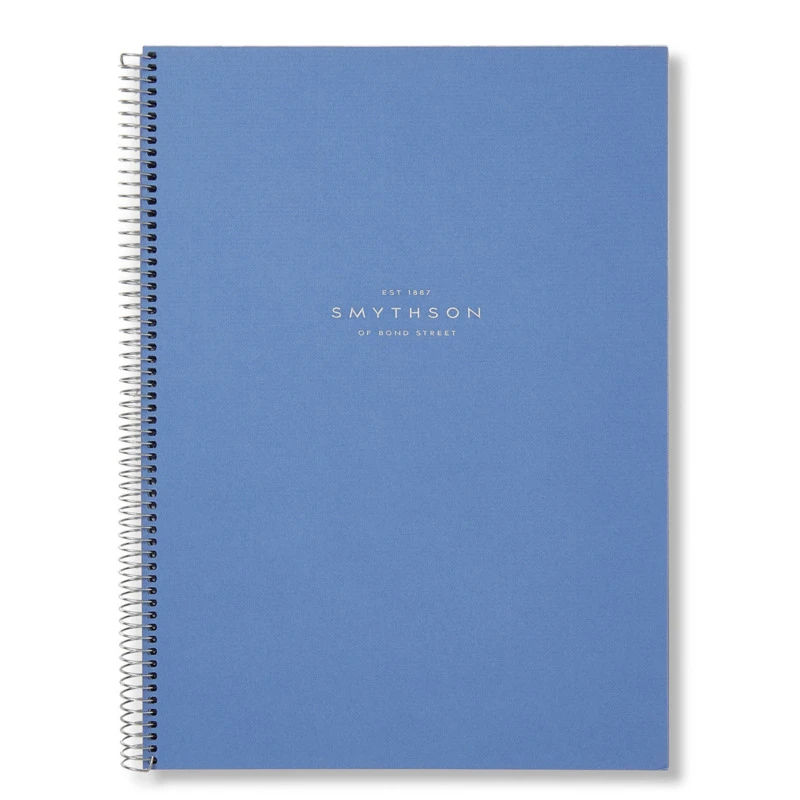 Aνταλλακτικό σημειωματαρίου από τον οίκο Smythson, σε γαλάζιο χρώμα με ασημί σόκορο και ασημί σπιράλ.