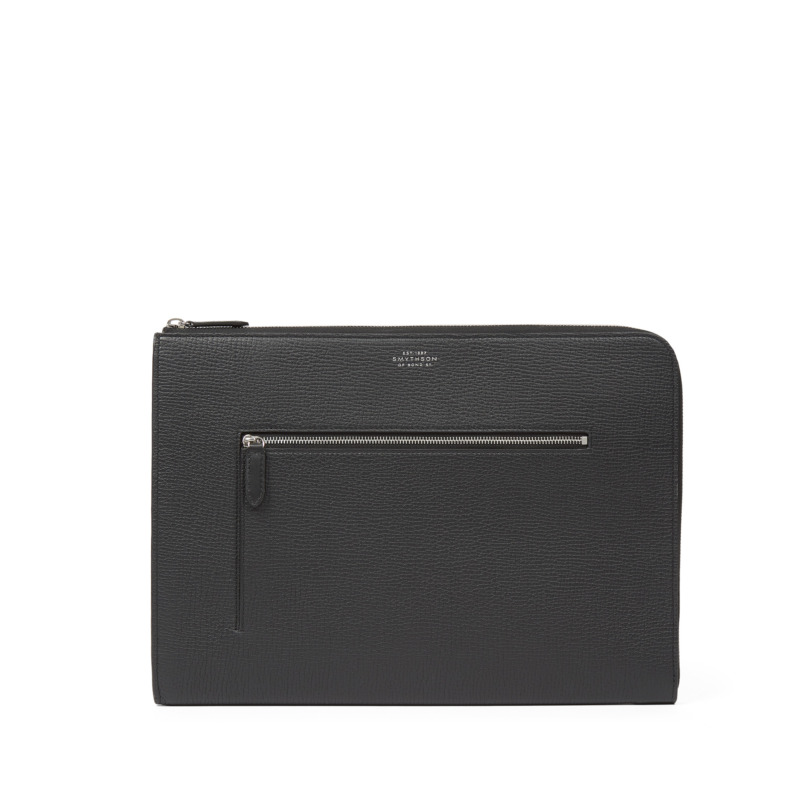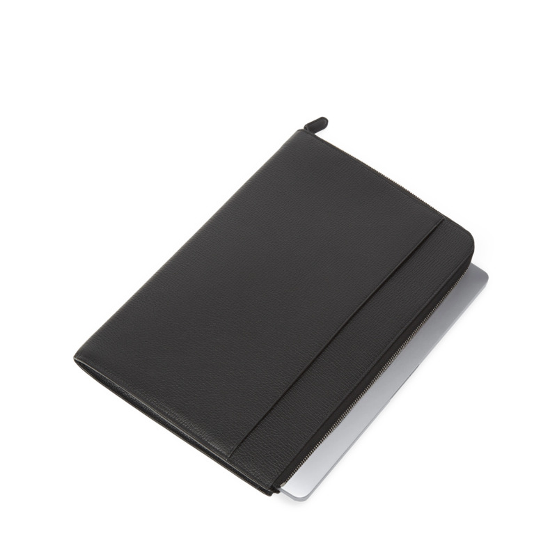 Δερμάτινη θήκη για λάπτοπ από τον οίκο Smythson σε διαχρονικό μαύρο χρώμα. Κατασκευασμένη από υψηλής ποιότητας δέρμα, αυτή η θήκη αποτελεί μια κομψή λύση για τη μεταφορά του φορητού υπολογιστή σας 13 ιντσών