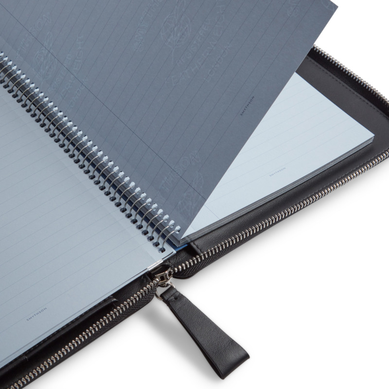 Δερμάτινο ντοσιέ από τον οίκο Smythson σε μαύρο χρώμα. Κατασκευασμένο από υψηλής ποιότητας δέρμα, αυτό το ντοσιέ είναι ιδανικό για κάθε επαγγελματική χρήση.