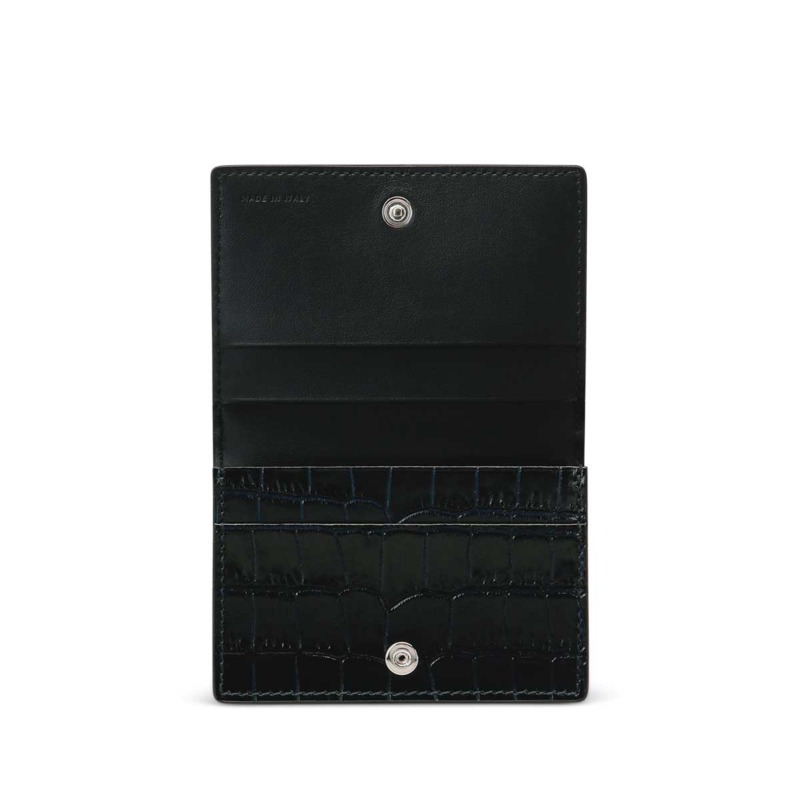 Καρτοθήκη από τον οίκο Smythson σε σκούρο μπλε χρώμα. Κατασκευασμένη από υψηλής ποιότητας δέρμα Mara, αυτή η θήκη είναι ιδανική για επαγγελματική και καθημερινή χρήση. Διαθέτει 3 θήκες για πιστωτικές κάρτες και μια πρόσθετη θήκη για επιπλέον αποθήκευση στο εσωτερικό και στο εξωτερικό μια επιπλέον θήκη για κάρτες.
