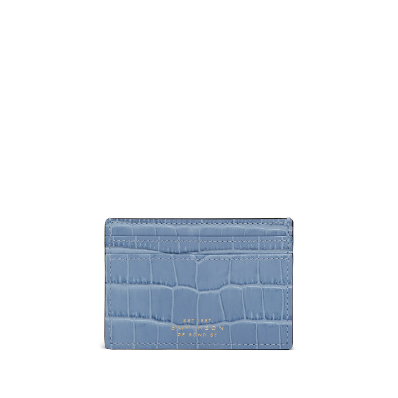 Καρτοθήκη από τον οίκο Smythson σε γαλάζιο χρώμα. Κατασκευασμένη από υψηλής ποιότητας δέρμα, αυτή η θήκη είναι ιδανική για επαγγελματική και καθημερινή χρήση. Διαθέτει 4 θήκες για πιστωτικές κάρτες και μια πρόσθετη θήκη για επιπλέον αποθήκευση.