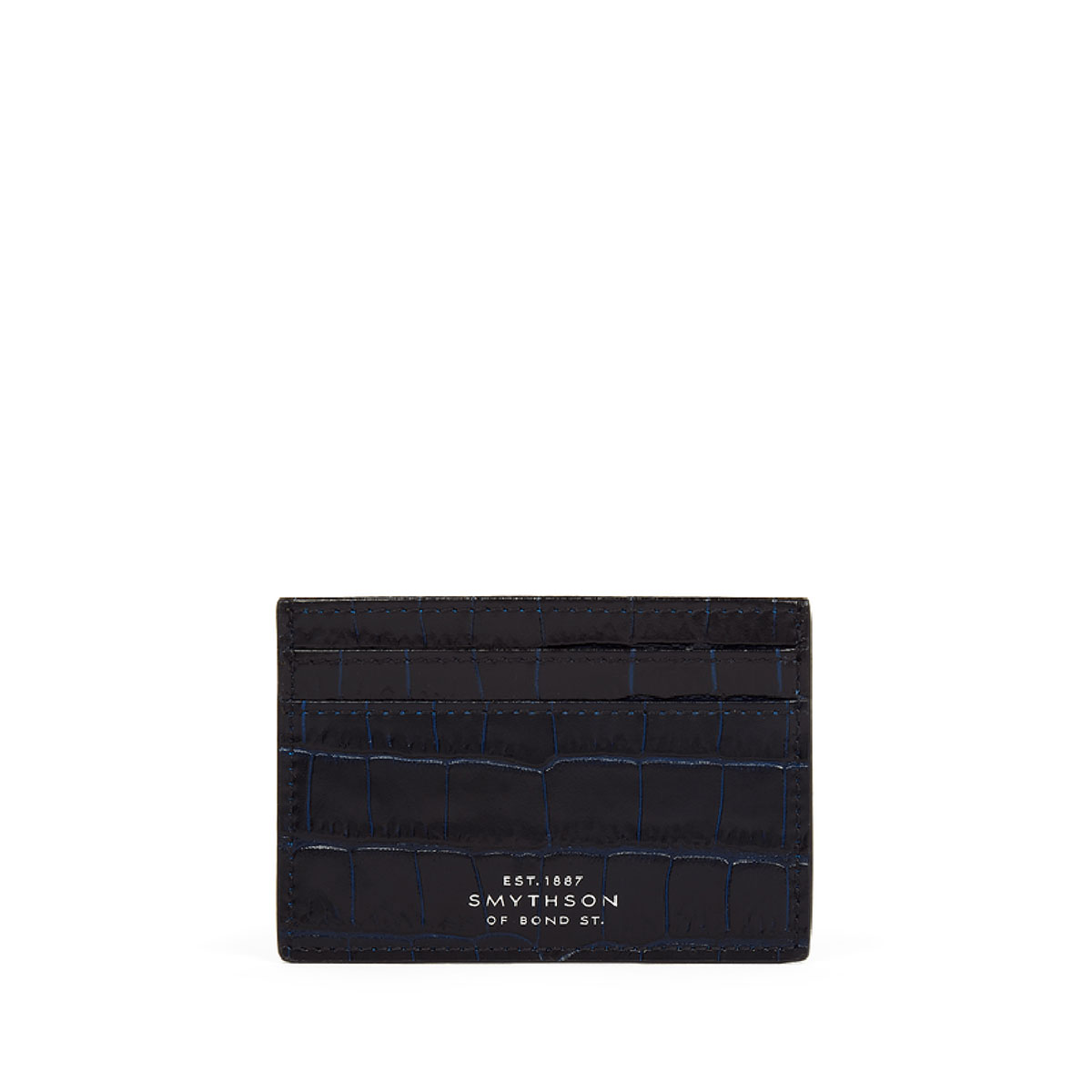 Καρτοθήκη από τον οίκο Smythson σε μπλε χρώμα. Κατασκευασμένη από υψηλής ποιότητας δέρμα, αυτή η θήκη είναι ιδανική για επαγγελματική και καθημερινή χρήση. Διαθέτει 4 θήκες για πιστωτικές κάρτες και μια πρόσθετη θήκη για επιπλέον αποθήκευση.