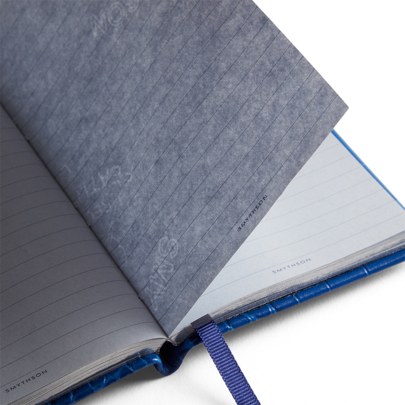 Σημειωματάριο Mara από τον οίκο Smythson, σε μπλε χρώμα. Κατασκευασμένο από υψηλής ποιότητας δέρμα, αυτό το κομψό σημειωματάριο είναι ιδανικό για να καταγράφετε τις καθημερινές σας σκέψεις, να διατηρείτε τις λίστες υποχρεώσεων σας οργανωμένες και να σημειώνετε τις προσωπικές σας σημειώσεις. Το σημειωματάριο διαθέτει σελιδοδείκτη στο ίδιο χρώμα για εύκολη πρόσβαση στις σελίδες σας, καθώς και ασημί σόκορο που προσδίδει μια αίσθηση πολυτέλειας.