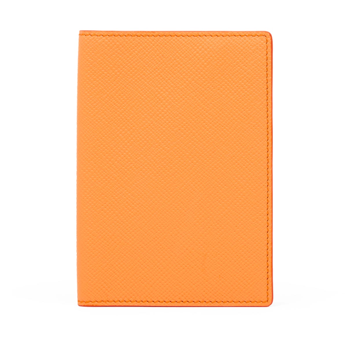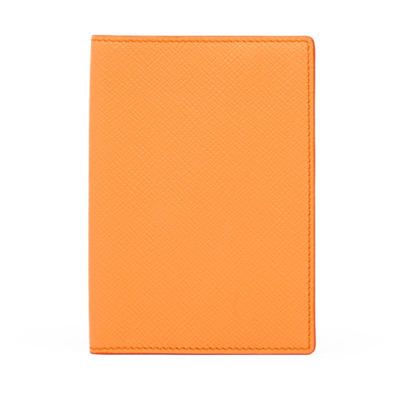 Θήκη Διαβατηρίου από τον οίκο Smythson σε πορτοκαλί χρώμα. Κατασκευασμένη από υψηλής ποιότητας δέρμα, αυτή η κομψή θήκη είναι ιδανική για να προσθέσετε μια πινελιά κομψότητας στα ταξίδια σας, ενώ παράλληλα προστατεύετε τα έγγραφά σας. Διαθέτει στο εσωτερικό δύο λοξές τσέπες για το διαβατήριό σας και την κάρτα επιβίβασης.
