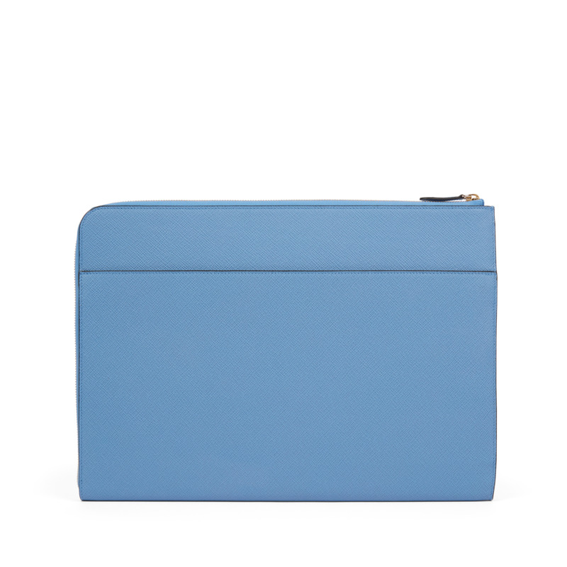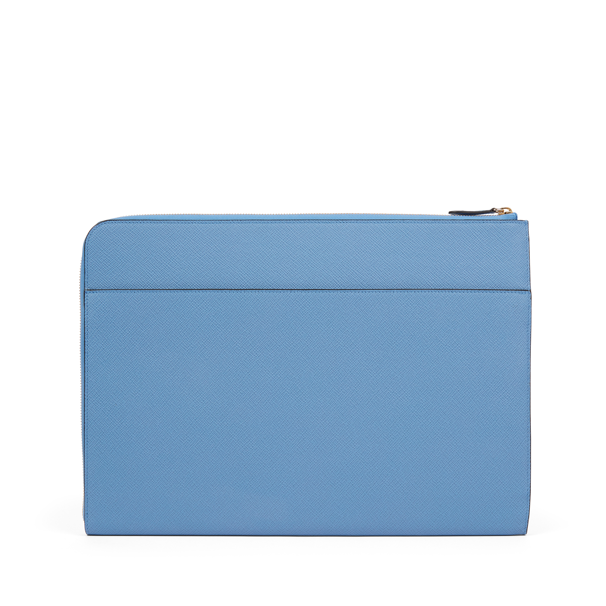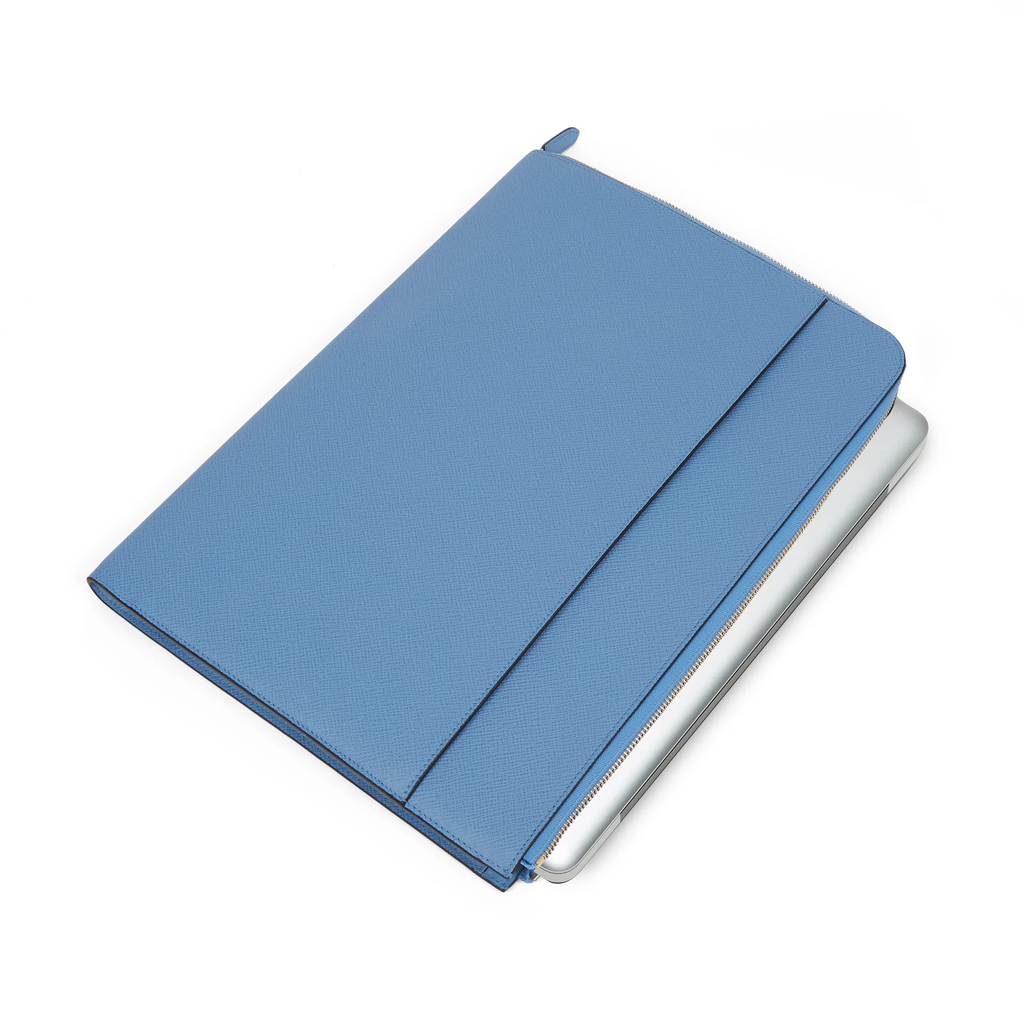 Δερμάτινη θήκη για λάπτοπ από τον οίκο Smythson σε γαλάζιο χρώμα. Κατασκευασμένη από υψηλής ποιότητας δέρμα, αυτή η θήκη αποτελεί μια κομψή λύση για τη μεταφορά του φορητού υπολογιστή σας 13 ιντσών