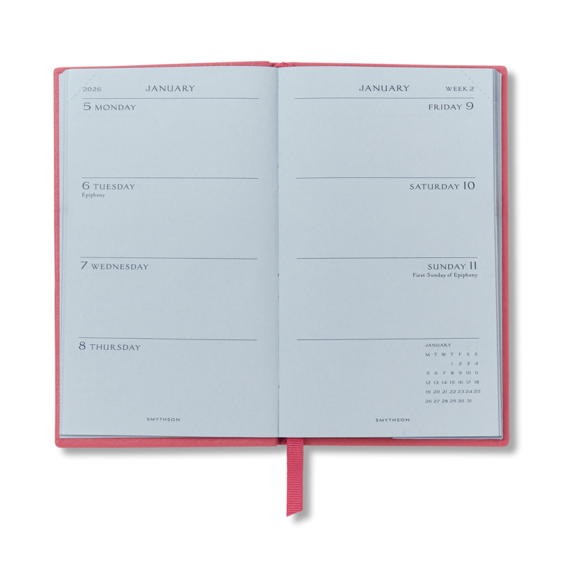 SMYTHSON PANAMA ΔΕΡΜΑΤΙΝΟ ΕΒΔΟΜΑΔΙΑΙΟ ΗΜΕΡΟΛΟΓΙΟ POCKET-SIZE A6 ( 9 X 14 ) 2026 ΡΟΖ