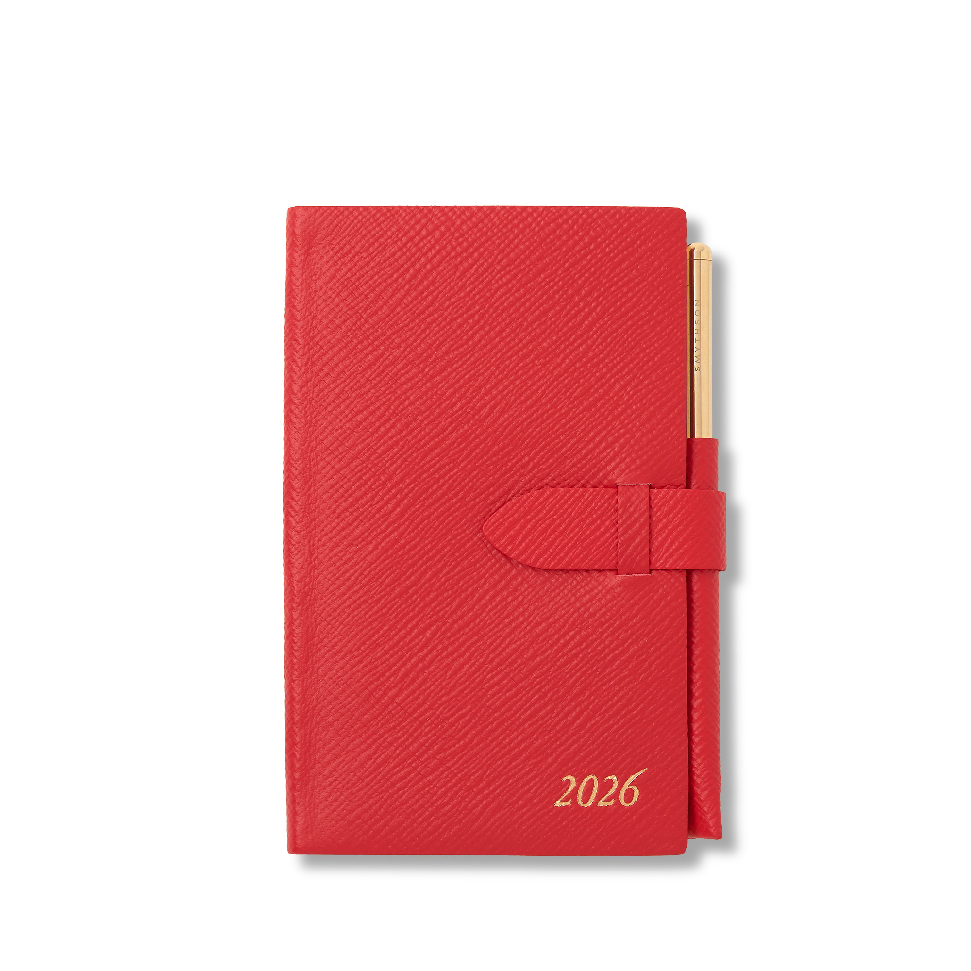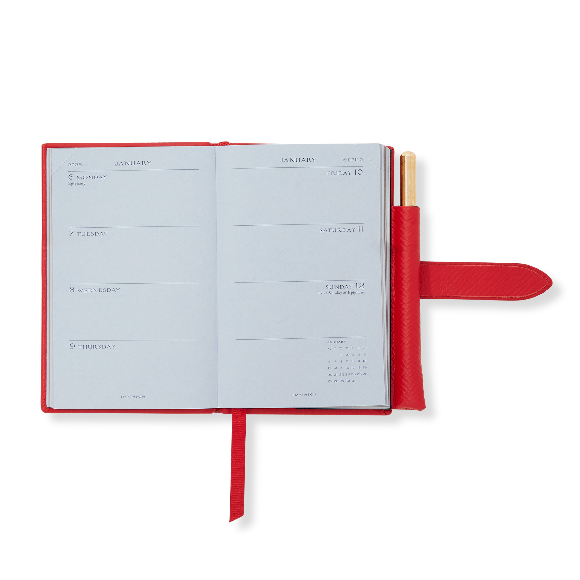 SMYTHSON PANAMA ΔΕΡΜΑΤΙΝΟ ΕΒΔΟΜΑΔΙΑΙΟ ΗΜΕΡΟΛΟΓΙΟ POCKET-SIZE A6 ( 9 X 14 ) 2026 ΜΕ ΜΟΛΥΒΙ ΚΟΚΚΙΝΟ