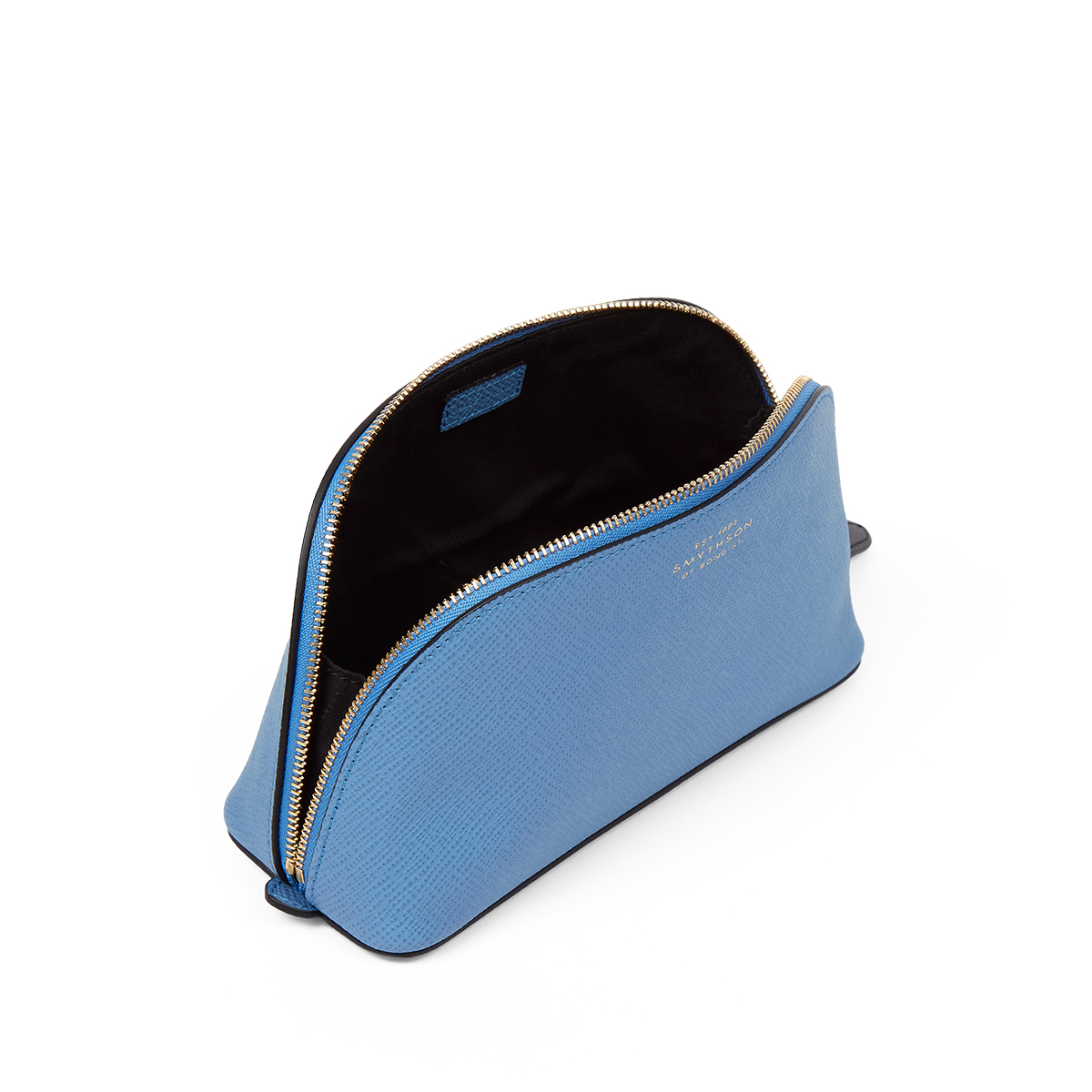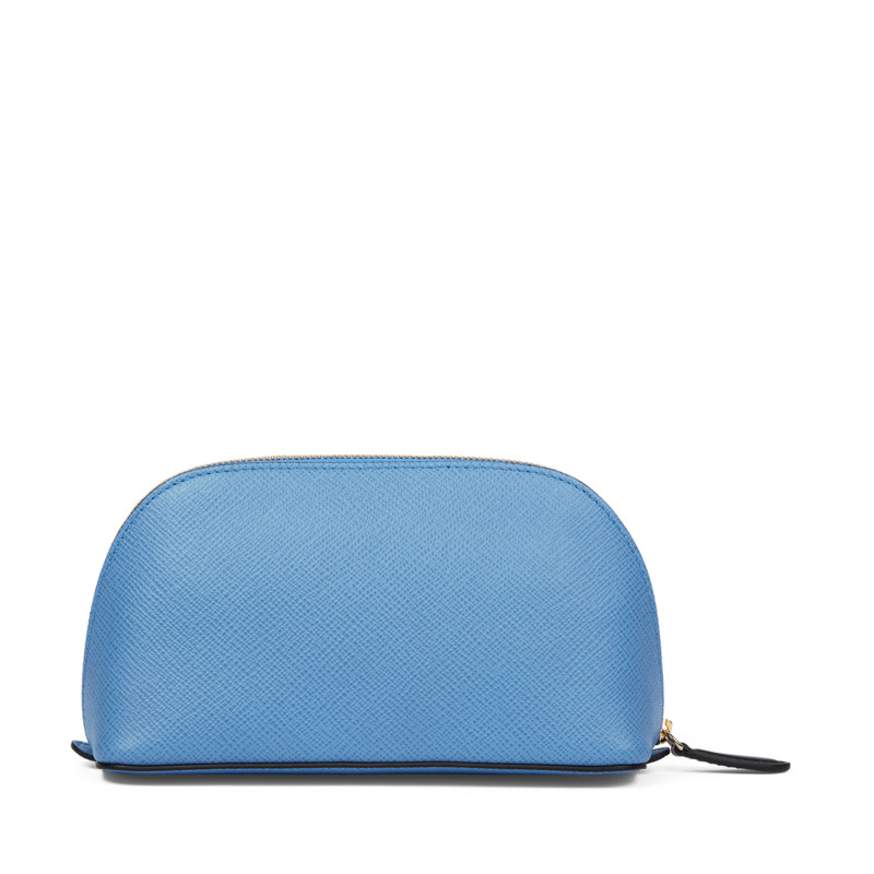 Τσαντάκι προσωπικών ειδών από τον οίκο Smythson, σε κομψό γαλάζιο χρώμα. Ιδανικό για να διατηρείτε τα απαραίτητα αντικείμενά σας οργανωμένα, είτε ταξιδεύετε είτε το χρησιμοποιείτε καθημερινά. Η εκλεπτυσμένη σχεδίαση και η άριστη ποιότητα υλικών αποπνέουν διακριτική πολυτέλεια, χαρακτηριστική του οίκου Smythson.