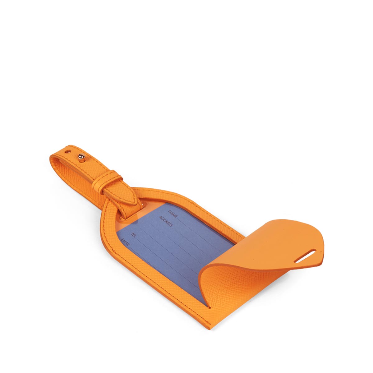 Ετικέτα αποσκευής από τον οίκο Smythson σε πορτοκαλί χρώμα. Αυτή η ετικέτα αποσκευών είναι η ιδανική επιλογή για να προσθέσετε μια πινελιά πολυτέλειας και στυλ στις ταξιδιωτικές σας εμπειρίες, είτε ταξιδεύετε για επαγγελματικούς λόγους είτε για αναψυχή.