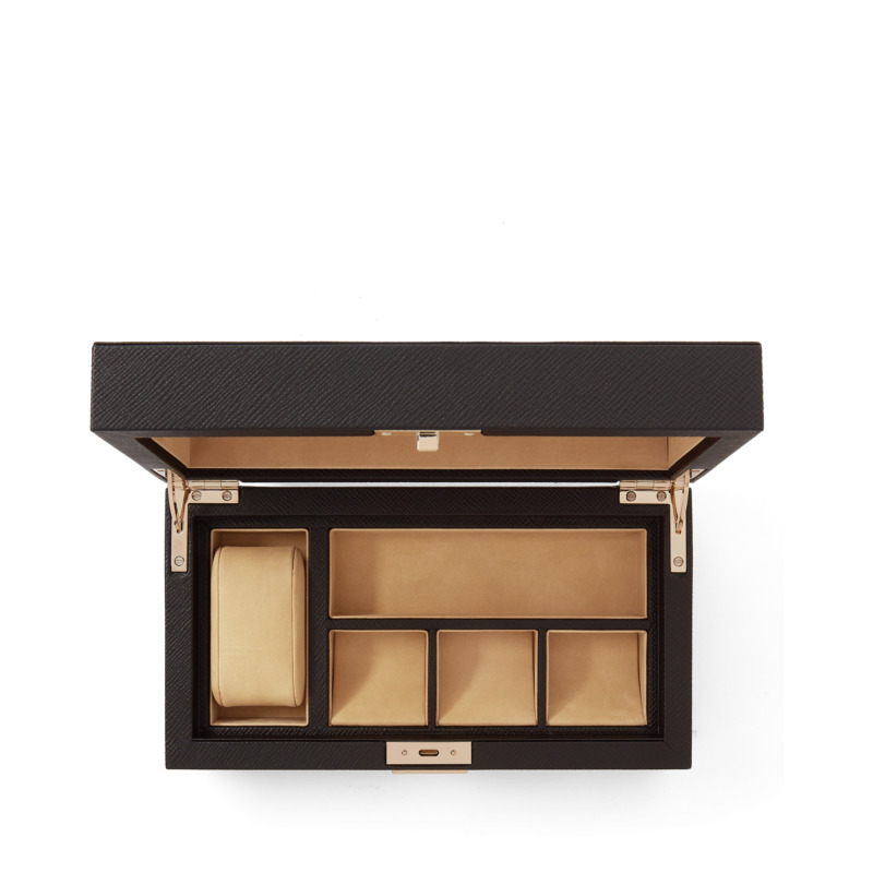 Θήκη κοσμημάτων από τον οίκο Smythson σε διαχρονικό μαύρο χρώμα.