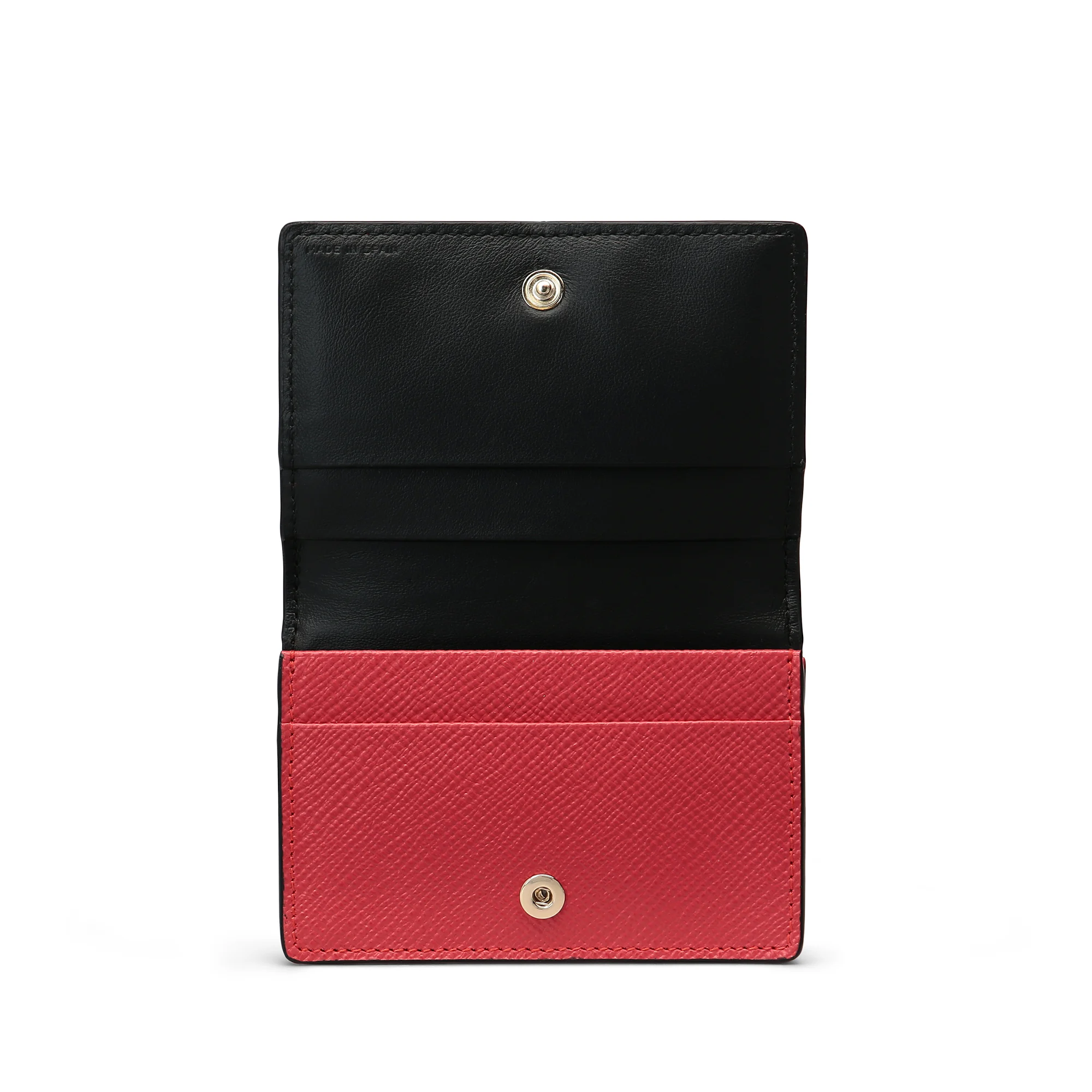 Καρτοθήκη από τον οίκο Smythson σε κόκκινο χρώμα. Κατασκευασμένη από υψηλής ποιότητας δέρμα, αυτή η θήκη είναι ιδανική για επαγγελματική και καθημερινή χρήση. Διαθέτει 3 θήκες για πιστωτικές κάρτες και μια πρόσθετη θήκη για επιπλέον αποθήκευση στο εσωτερικό και στο εξωτερικό μια επιπλέον θήκη για κάρτες.