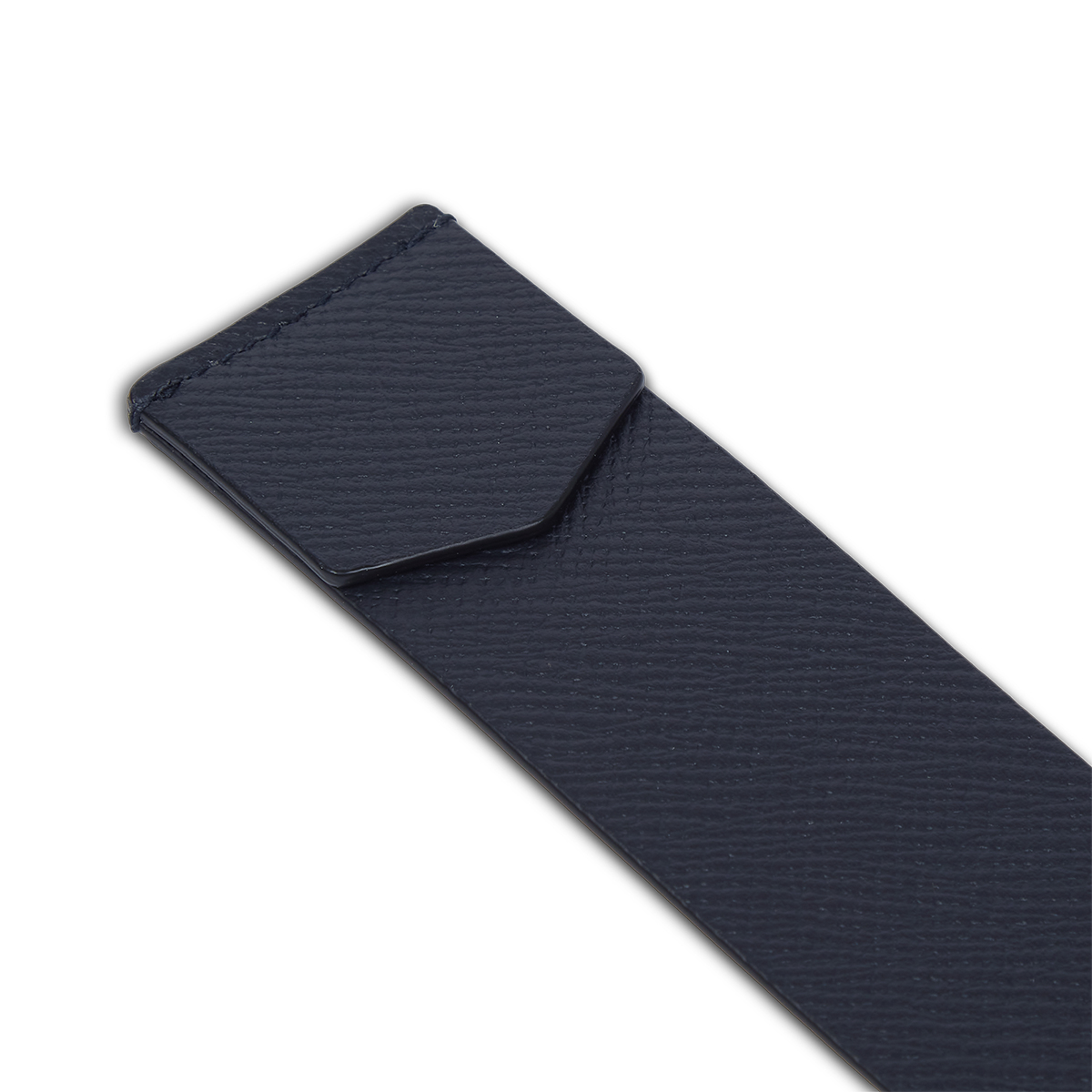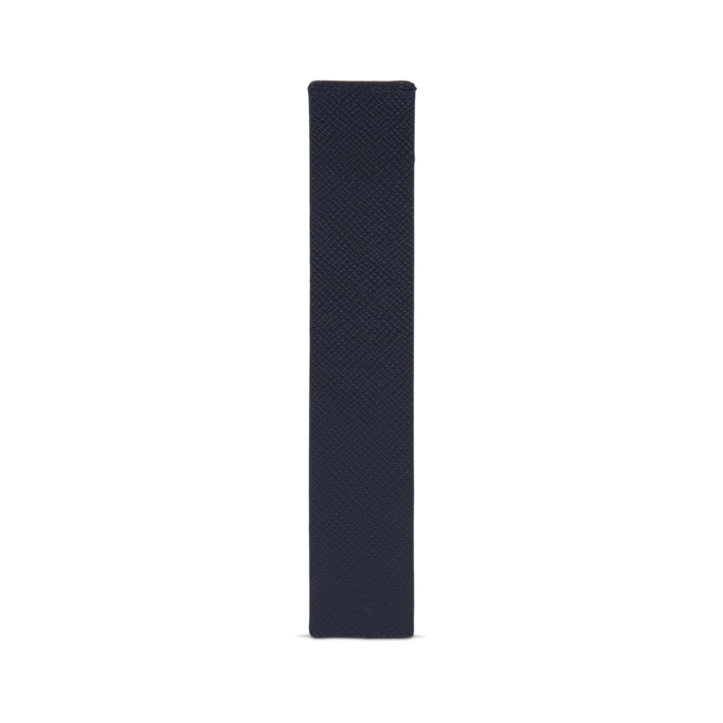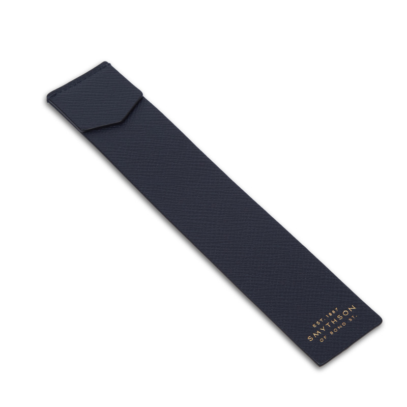 Δερμάτινος σελιδοδείκτης από την εταιρεία Smythson σε σκούρο μπλε χρώμα.