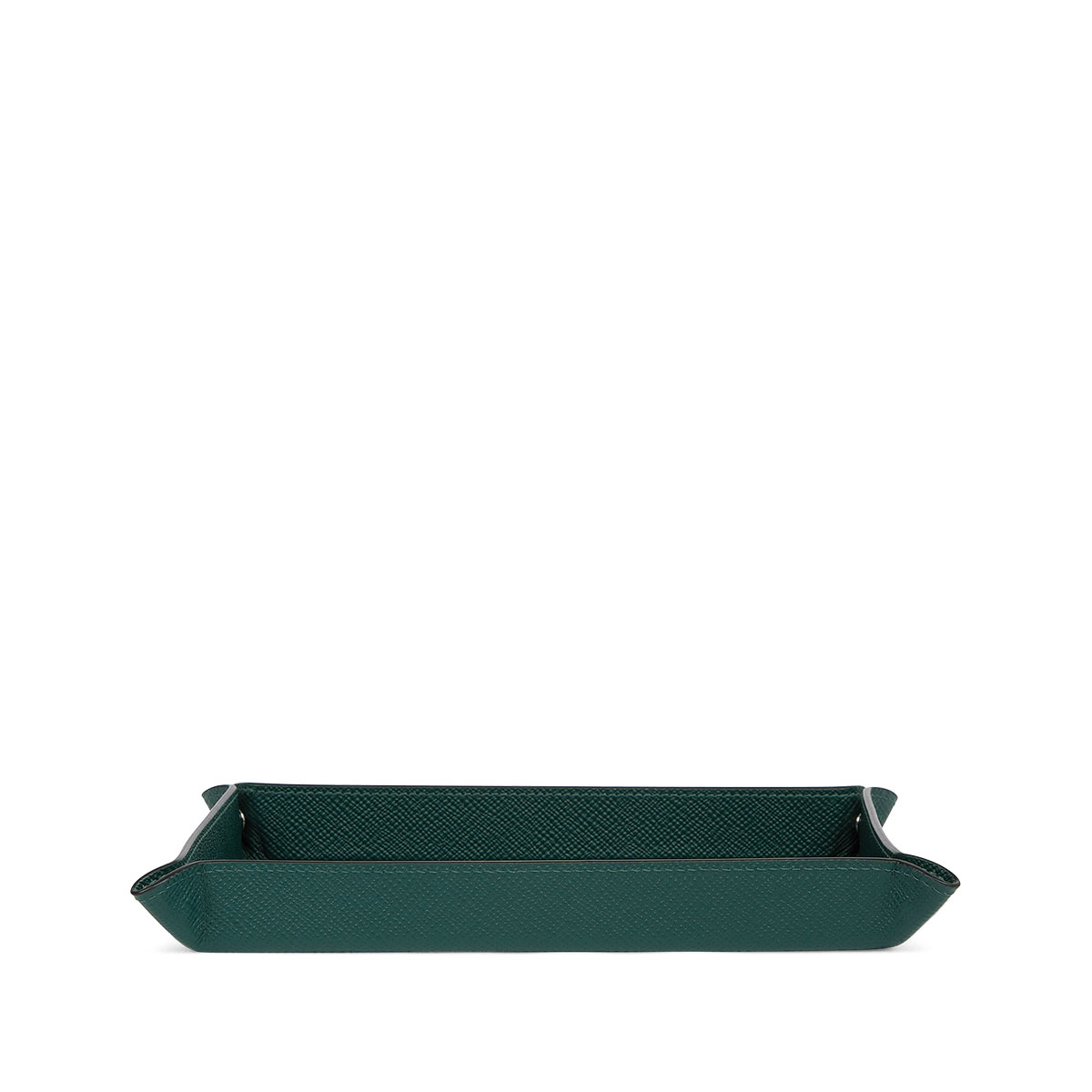 Προσθέστε διακριτική κομψότητα στον χώρο εργασίας σας με αυτό το εκλεπτυσμένο δερμάτινο δισκάκι γραφείου σε πράσινο χρώμα Ιδανικό για την οργάνωση μικροαντικειμένων, καρτών ή κοσμημάτων, συνδυάζει την πρακτικότητα με την πολυτέλεια της χειροποίητης δερμάτινης κατασκευής.