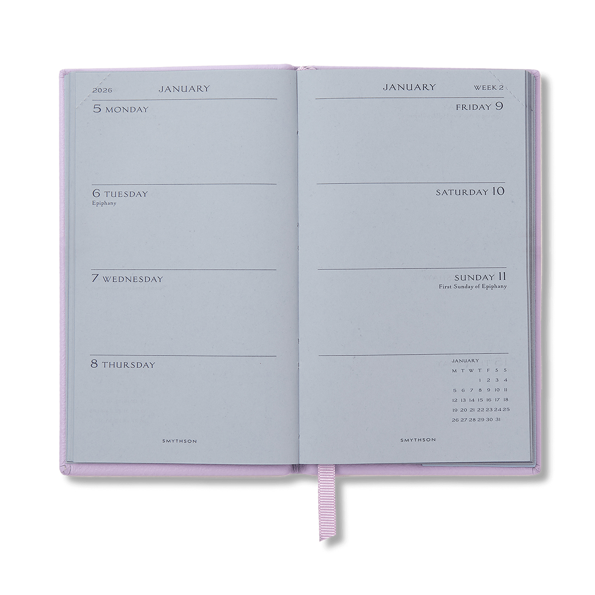 SMYTHSON PANAMA PREMIUM ΔΕΡΜΑΤΙΝΟ ΕΒΔΟΜΑΔΙΑΙΟ ΗΜΕΡΟΛΟΓΙΟ POCKET-SIZE A6 ( 9 X 14 ) 2026 LILAC