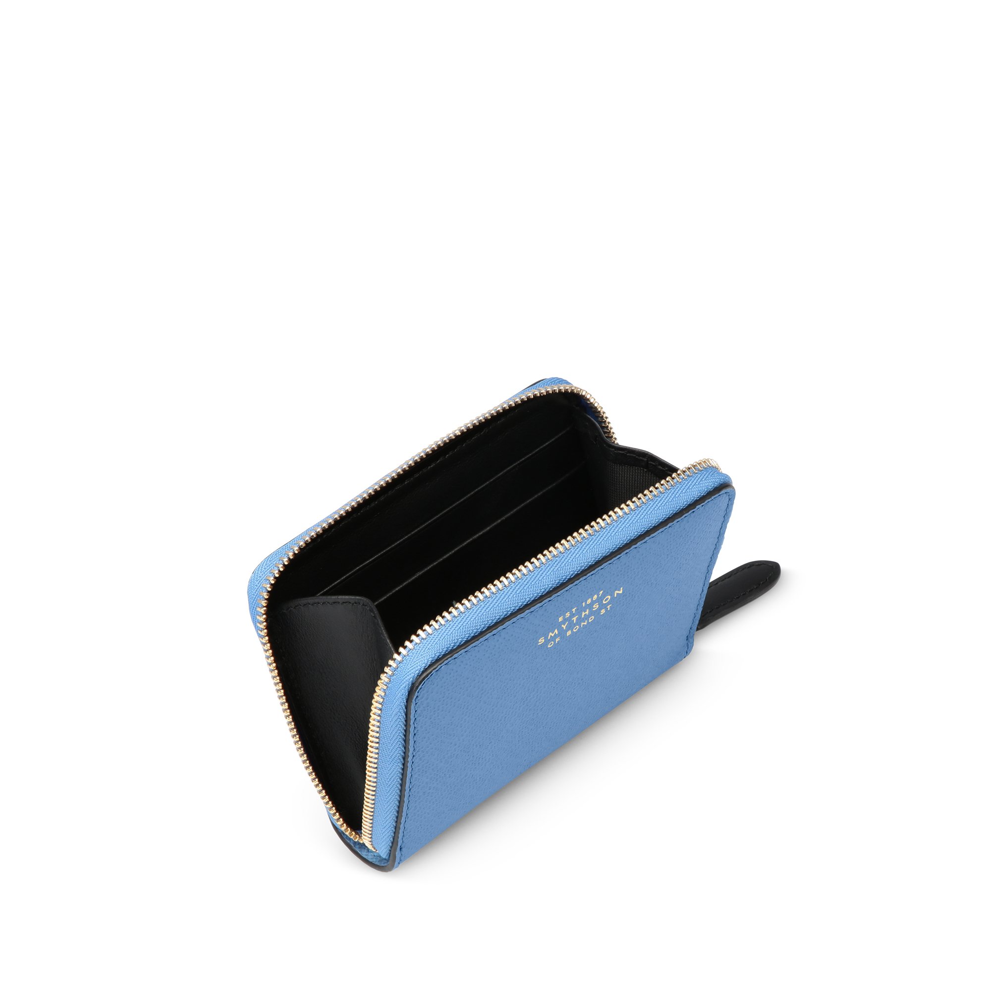 Πορτοφόλι από τον οίκο Smythson σε γαλάζιο χρώμα. Κατασκευασμένο από υψηλής ποιότητας δέρμα, αυτό το πορτοφόλι είναι ιδανικό για επαγγελματική και καθημερινή χρήση. Διαθέτει 4 θήκες για πιστωτικές κάρτες και μια επιπλέον για κέρματα