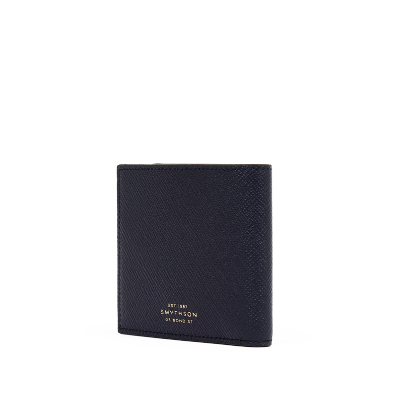 Πορτοφόλι από τον οίκο Smythson σε σκούρο μπλε χρώμα. Κατασκευασμένο από υψηλής ποιότητας δέρμα, αυτό το πορτοφόλι είναι ιδανικό για επαγγελματική και καθημερινή χρήση. Διαθέτει 6 θήκες για πιστωτικές κάρτες και μια επιπλέον για κέρματα