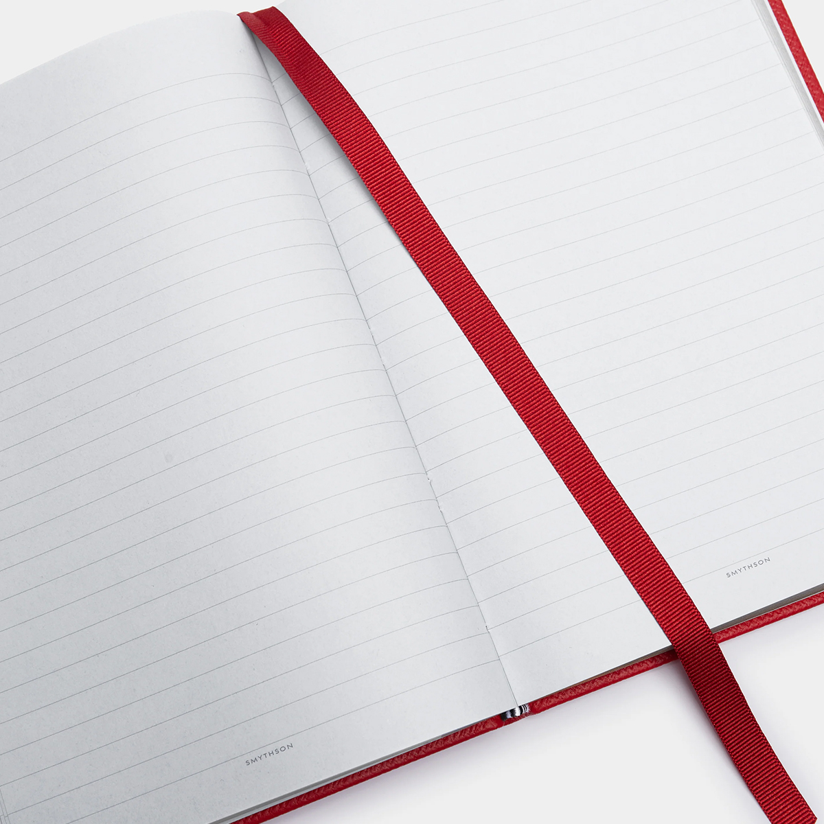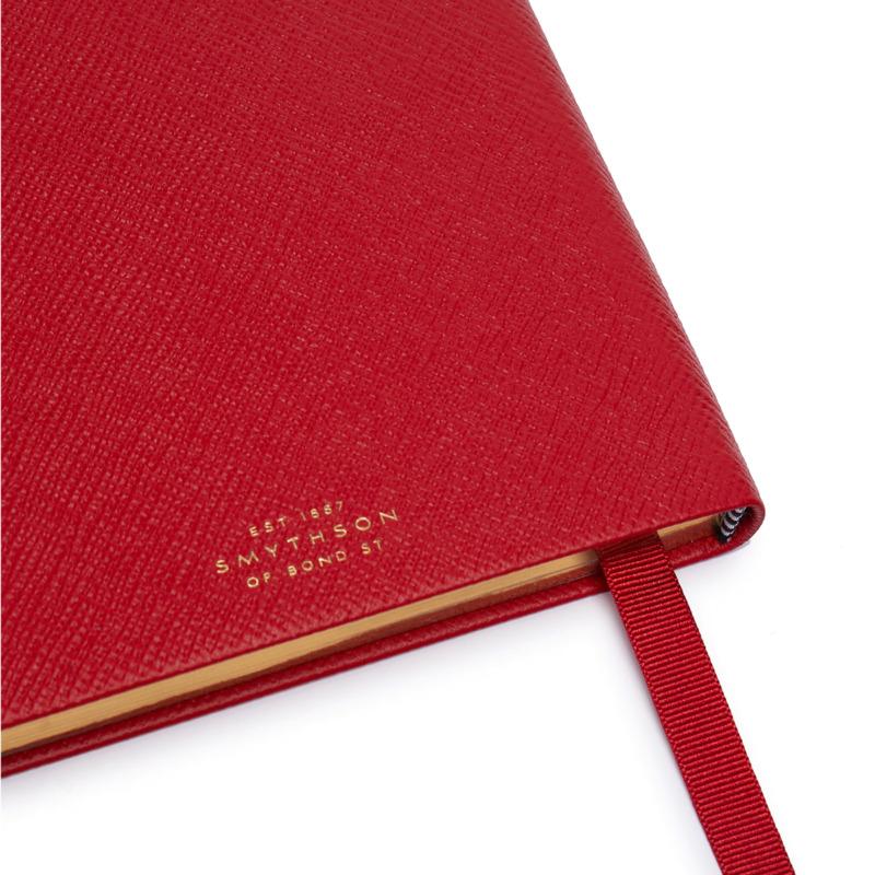 Σημειωματάριο Soho από τον οίκο Smythson, σε κόκκινο χρώμα. Κατασκευασμένο από υψηλής ποιότητας δέρμα, αυτό το κομψό σημειωματάριο είναι ιδανικό για να καταγράφετε τις καθημερινές σας σκέψεις, να διατηρείτε τις λίστες υποχρεώσεων σας οργανωμένες και να σημειώνετε τις προσωπικές σας σημειώσεις. Το σημειωματάριο διαθέτει σελιδοδείκτη στο ίδιο χρώμα για εύκολη πρόσβαση στις σελίδες σας, καθώς και χρυσό σόκορο που προσδίδει μια αίσθηση πολυτέλειας.
