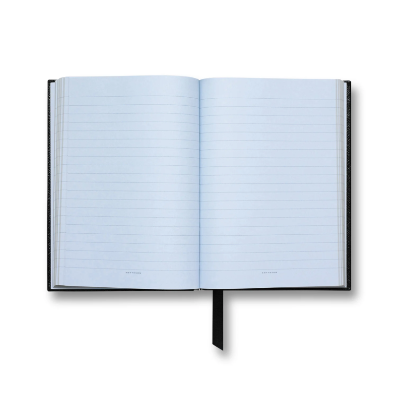 Σημειωματάριο Soho από τον οίκο Smythson, σε διαχρονικό μαύρο χρώμα. Κατασκευασμένο από υψηλής ποιότητας δέρμα, αυτό το κομψό σημειωματάριο είναι ιδανικό για να καταγράφετε τις καθημερινές σας σκέψεις, να διατηρείτε τις λίστες υποχρεώσεων σας οργανωμένες και να σημειώνετε τις προσωπικές σας σημειώσεις. Το σημειωματάριο διαθέτει σελιδοδείκτη στο ίδιο χρώμα για εύκολη πρόσβαση στις σελίδες σας, καθώς και ασημί σόκορο που προσδίδει μια αίσθηση πολυτέλειας.